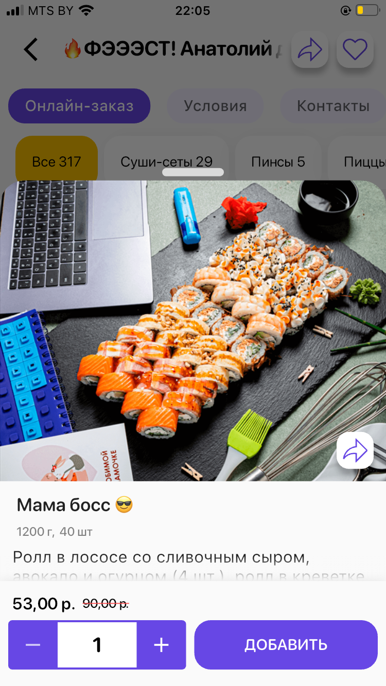 - Время доставки: от 80 минут (доступны все типы оплат)