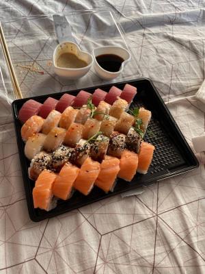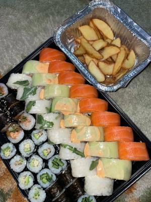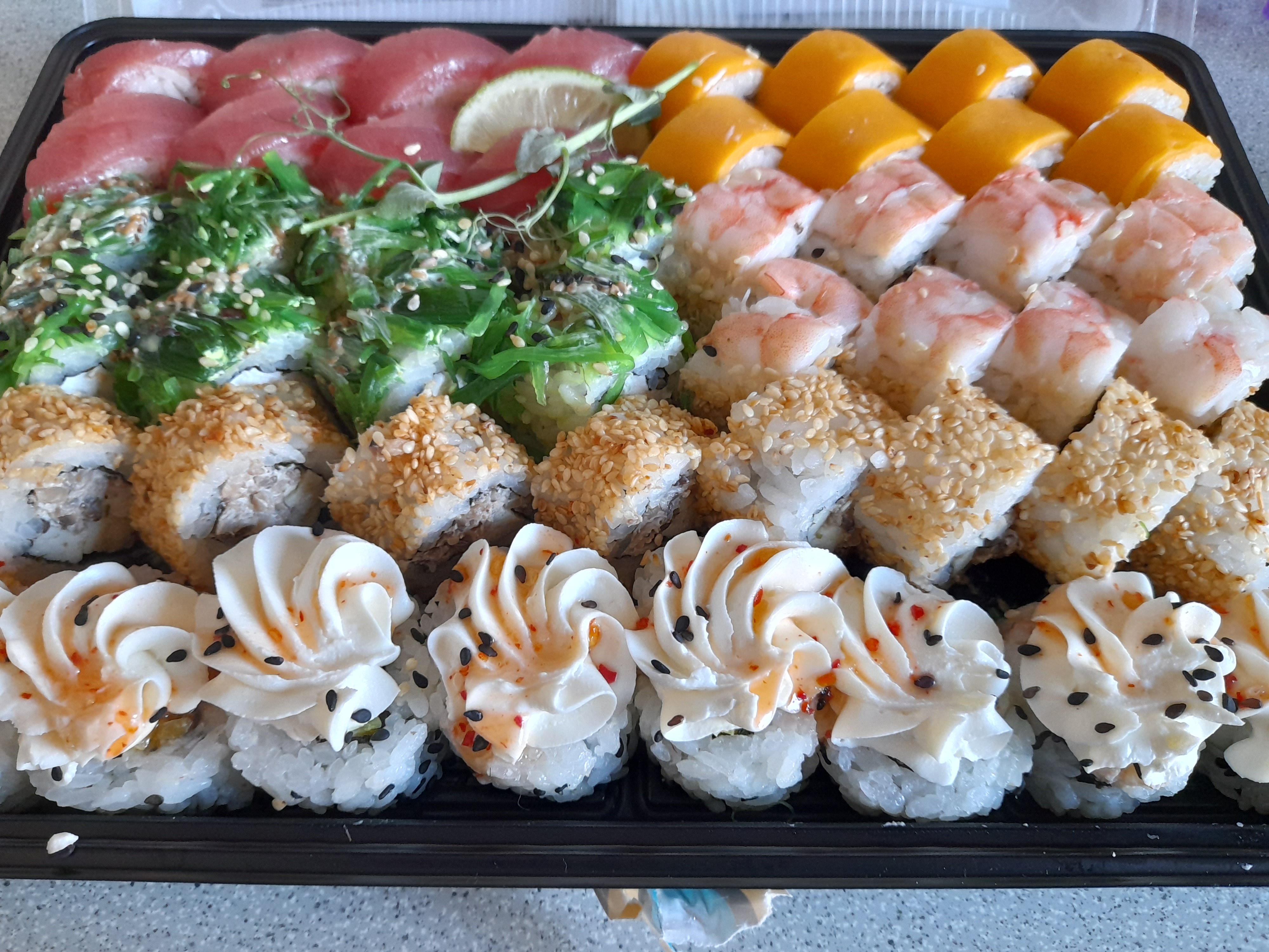 - Внимание! К предзаказу на 31.12 доступны: сет "Новогодний", "Мамины радости", "Макеба", "Ясахи", "Филадельфия", "Каприз", "Игра в кальмара", "Можно всё!", "Мама босс", "Палитра вкуса", "Муж купил", "Биг босс", "Мафия", "Манга", роллы Урамаки, все напитки и гарниры