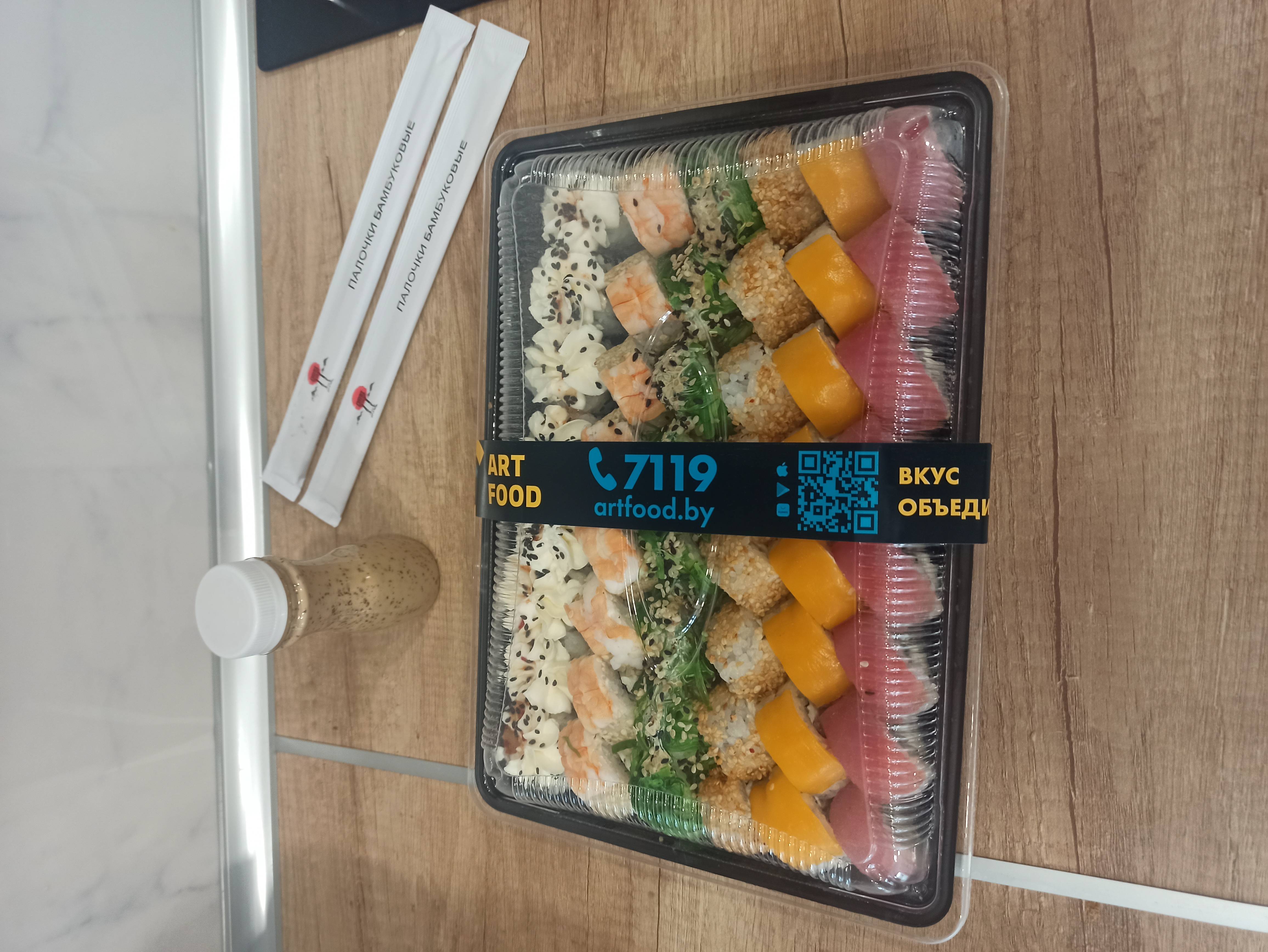 - Промокод дает право на скидку до 60% на суши-сеты от "ART FOOD"