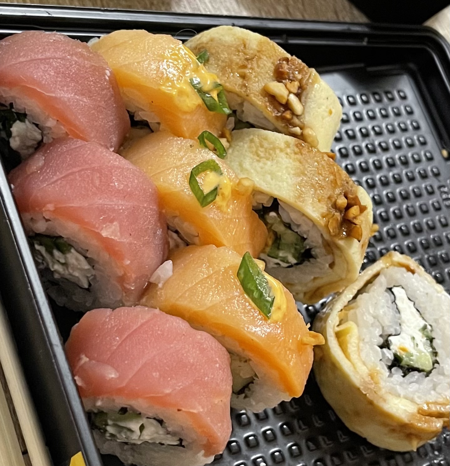 - Внимание! К предзаказу на 31.12 доступны: сет "Новогодний", "Мамины радости", "Макеба", "Ясахи", "Филадельфия", "Каприз", "Игра в кальмара", "Можно всё!", "Мама босс", "Палитра вкуса", "Муж купил", "Биг босс", "Мафия", "Манга", роллы Урамаки, все напитки и гарниры