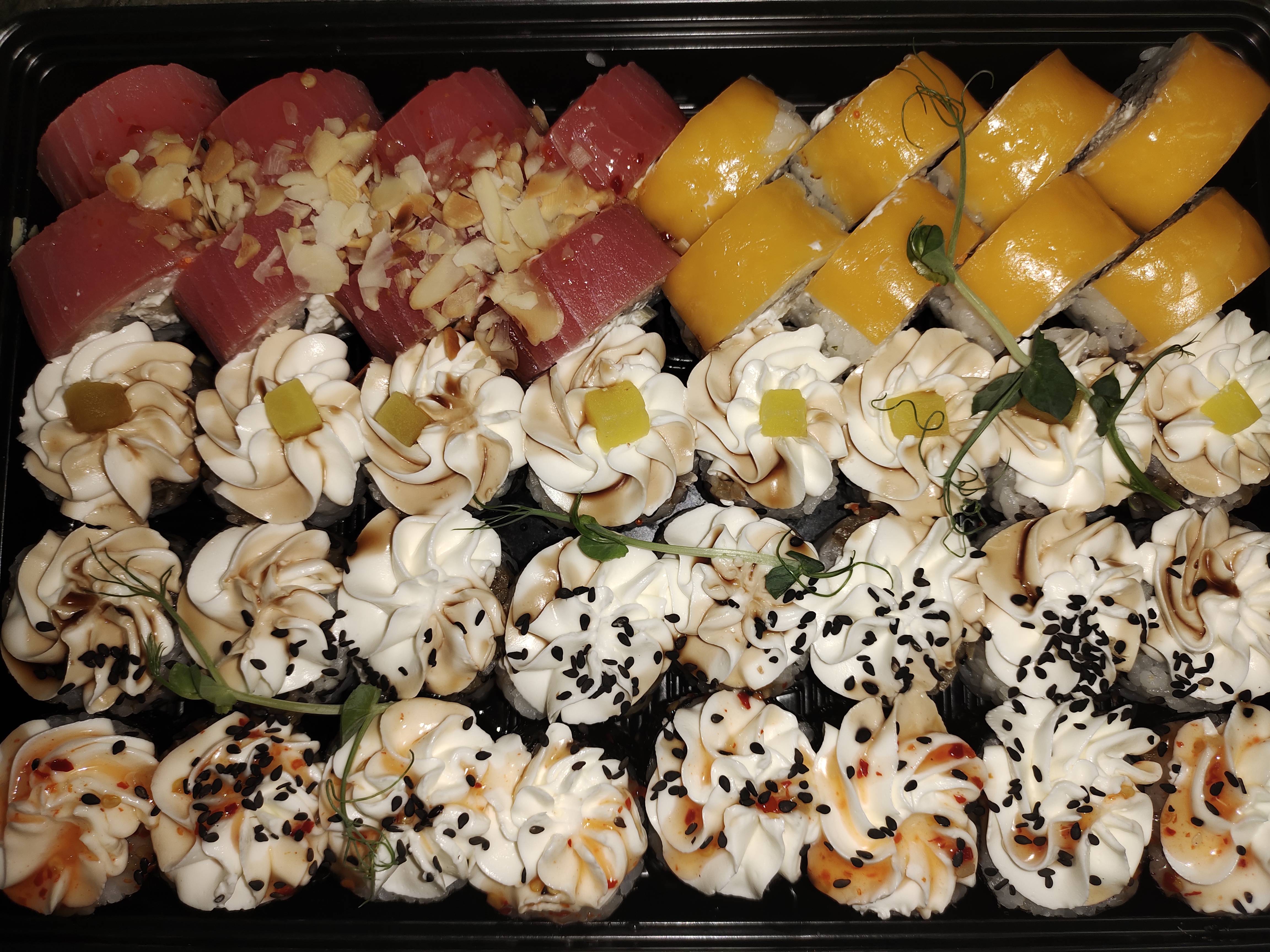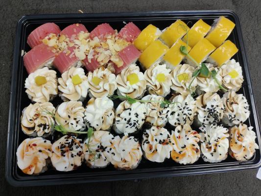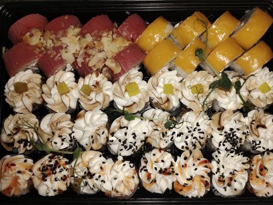 - Внимание! К предзаказу на 31.12 доступны: сет "Новогодний", "Мамины радости", "Макеба", "Ясахи", "Филадельфия", "Каприз", "Игра в кальмара", "Можно всё!", "Мама босс", "Палитра вкуса", "Муж купил", "Биг босс", "Мафия", "Манга", роллы Урамаки, все напитки и гарниры