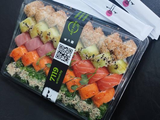 - Промокод дает право на скидку до 60% на суши-сеты от "ART FOOD"