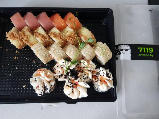 - Промокод дает право на скидку до 60% на суши-сеты от "ART FOOD"