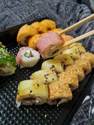 - Внимание! К предзаказу на 31.12 доступны: сет "Новогодний", "Мамины радости", "Макеба", "Ясахи", "Филадельфия", "Каприз", "Игра в кальмара", "Можно всё!", "Мама босс", "Палитра вкуса", "Муж купил", "Биг босс", "Мафия", "Манга", роллы Урамаки, все напитки и гарниры