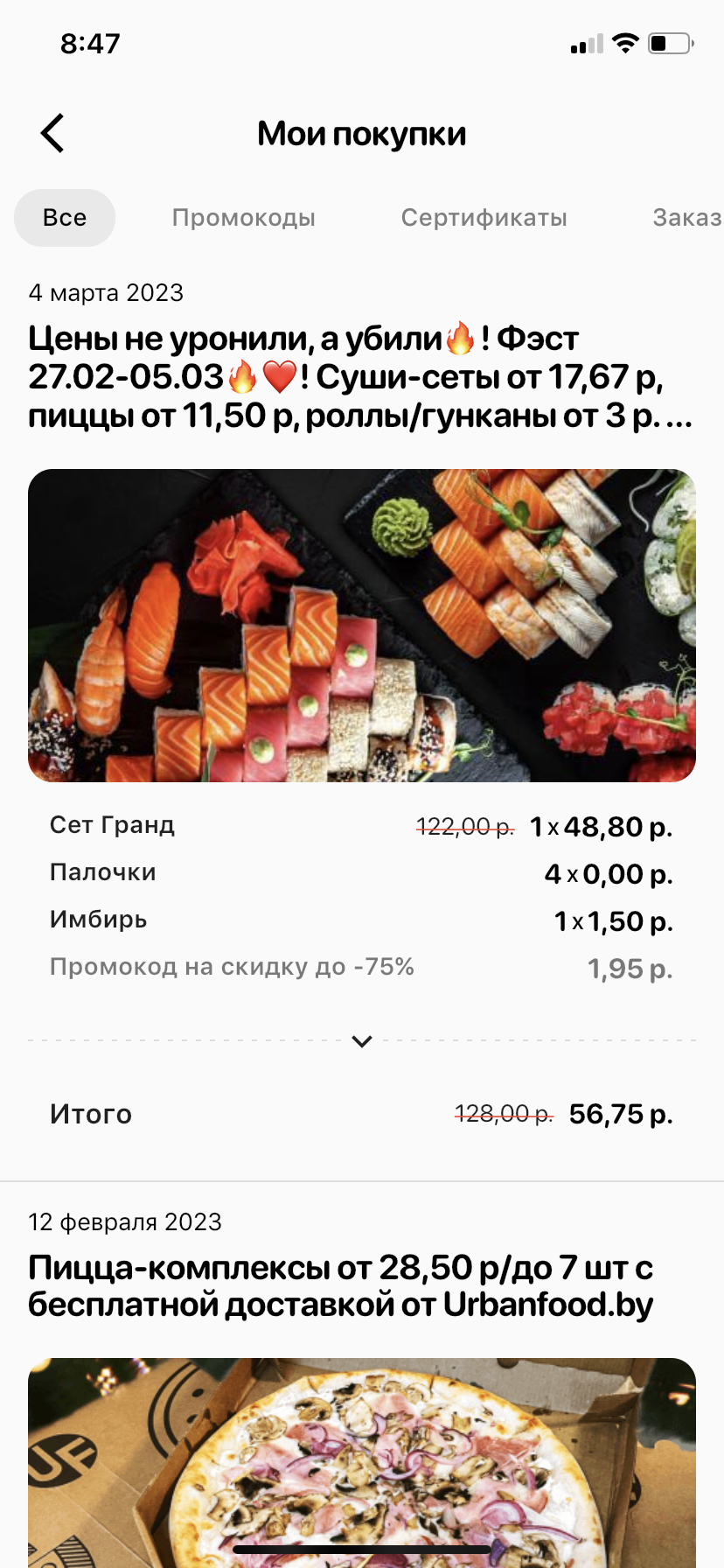 - Промокод дает право на скидку до 60% на суши-сеты от "ART FOOD"