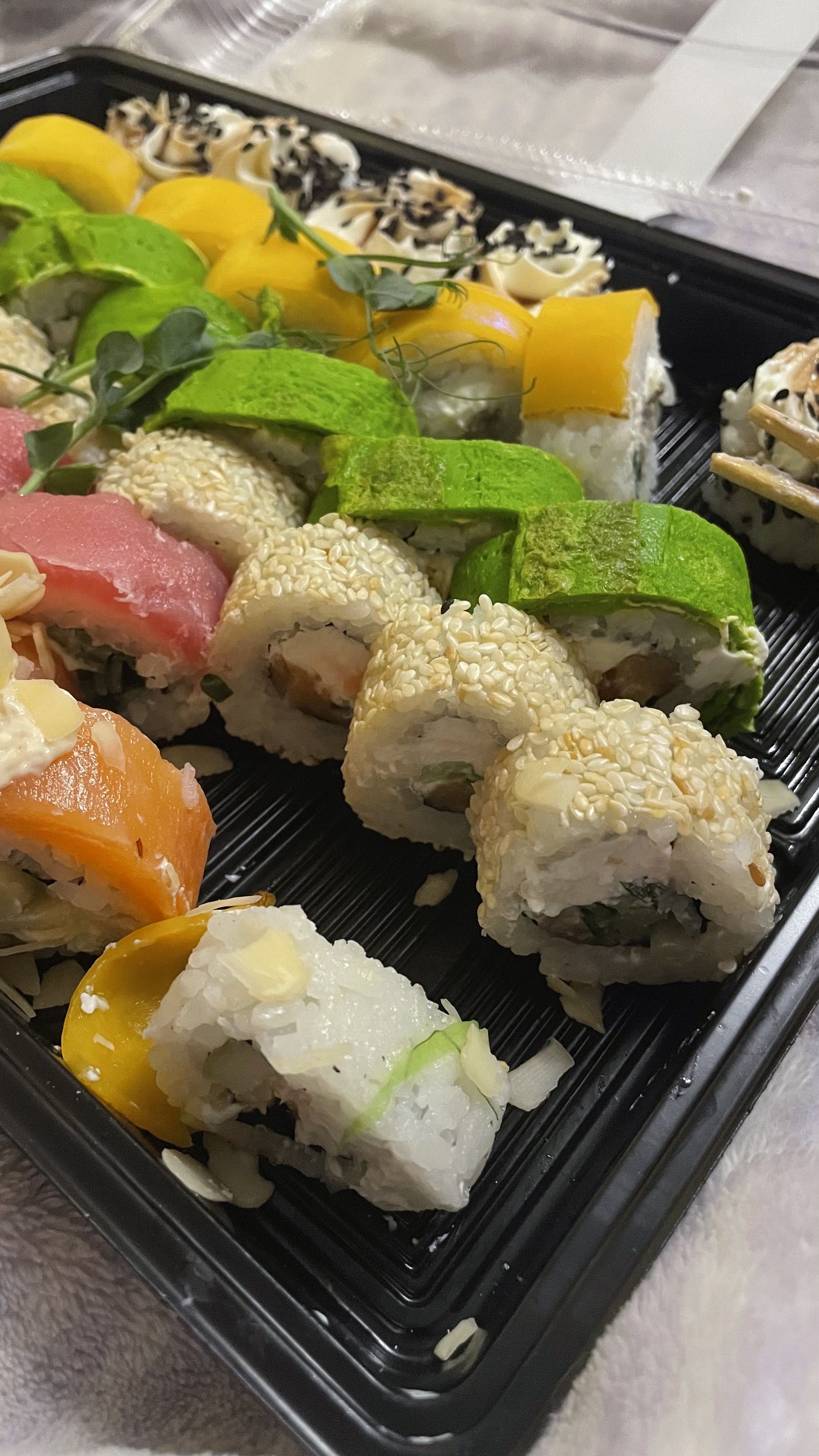 - Внимание! К предзаказу на 31.12 доступны: сет "Новогодний", "Мамины радости", "Макеба", "Ясахи", "Филадельфия", "Каприз", "Игра в кальмара", "Можно всё!", "Мама босс", "Палитра вкуса", "Муж купил", "Биг босс", "Мафия", "Манга", роллы Урамаки, все напитки и гарниры