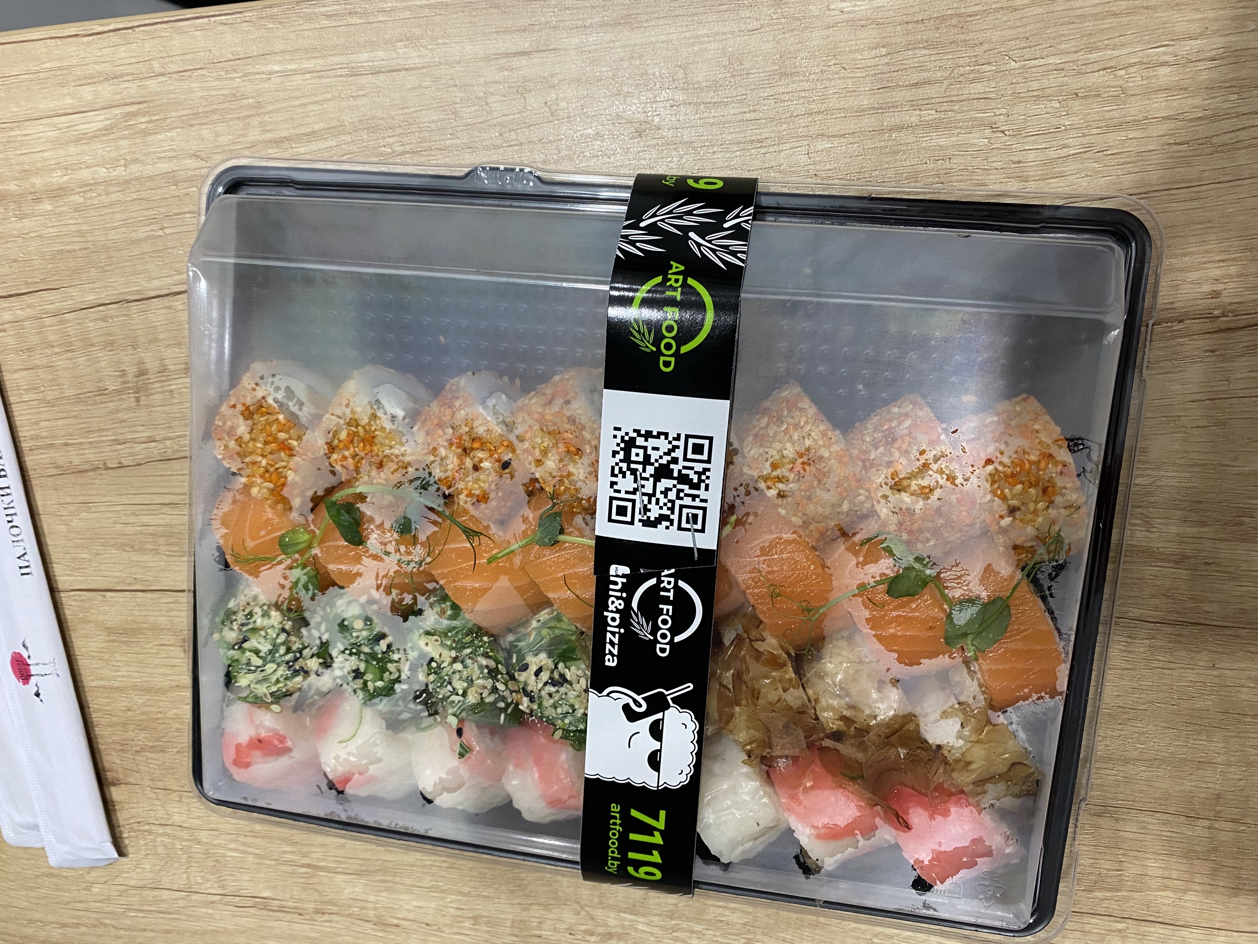 - Промокод дает право на скидку до 68% на суши-сеты, поке, горячие блюда, супы, салаты, роллы, гунканы, нигири, пицца, пинса от "ART FOOD"