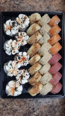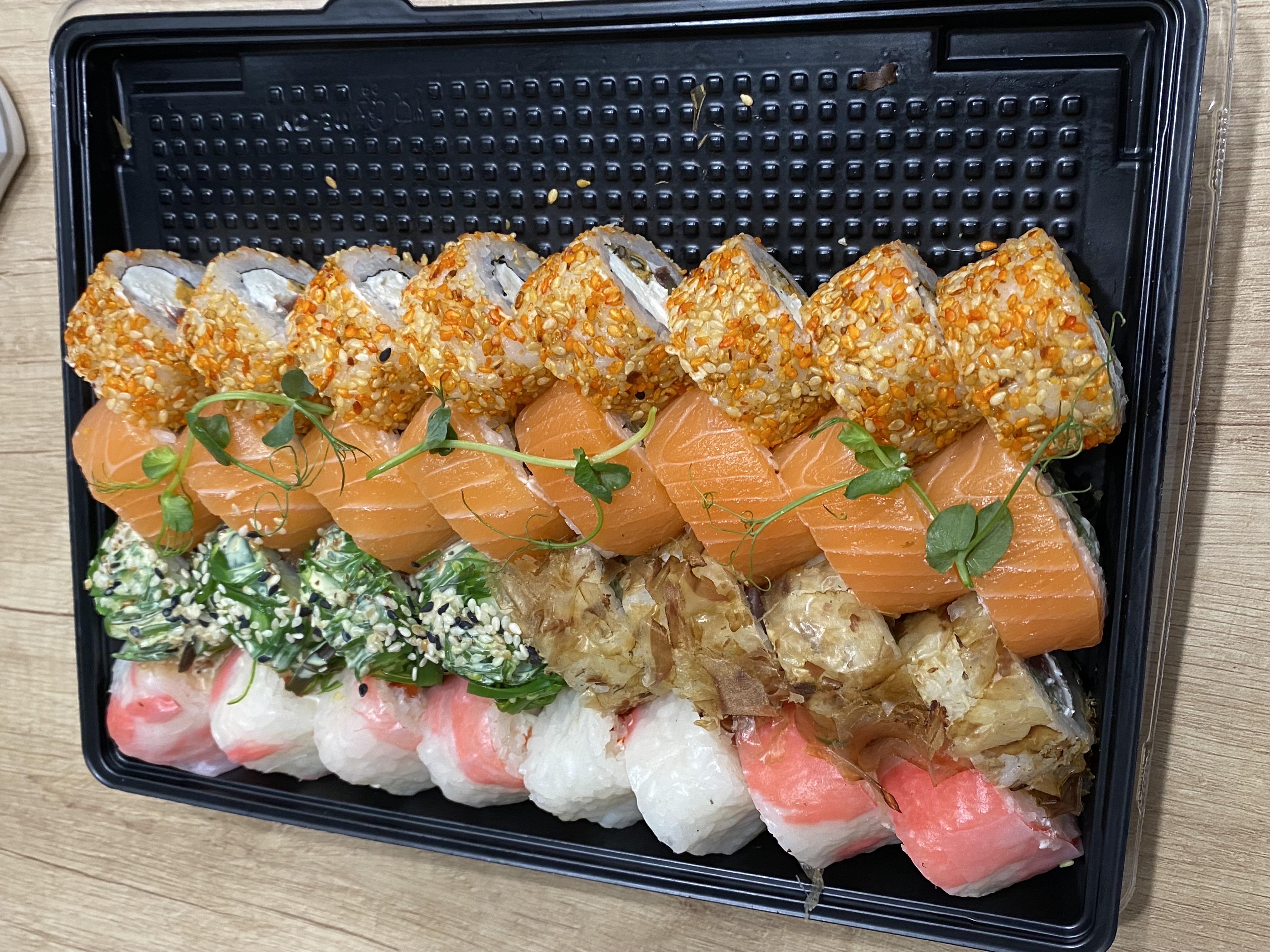 - Внимание! К предзаказу на 31.12 доступны: сет "Новогодний", "Мамины радости", "Макеба", "Ясахи", "Филадельфия", "Каприз", "Игра в кальмара", "Можно всё!", "Мама босс", "Палитра вкуса", "Муж купил", "Биг босс", "Мафия", "Манга", роллы Урамаки, все напитки и гарниры