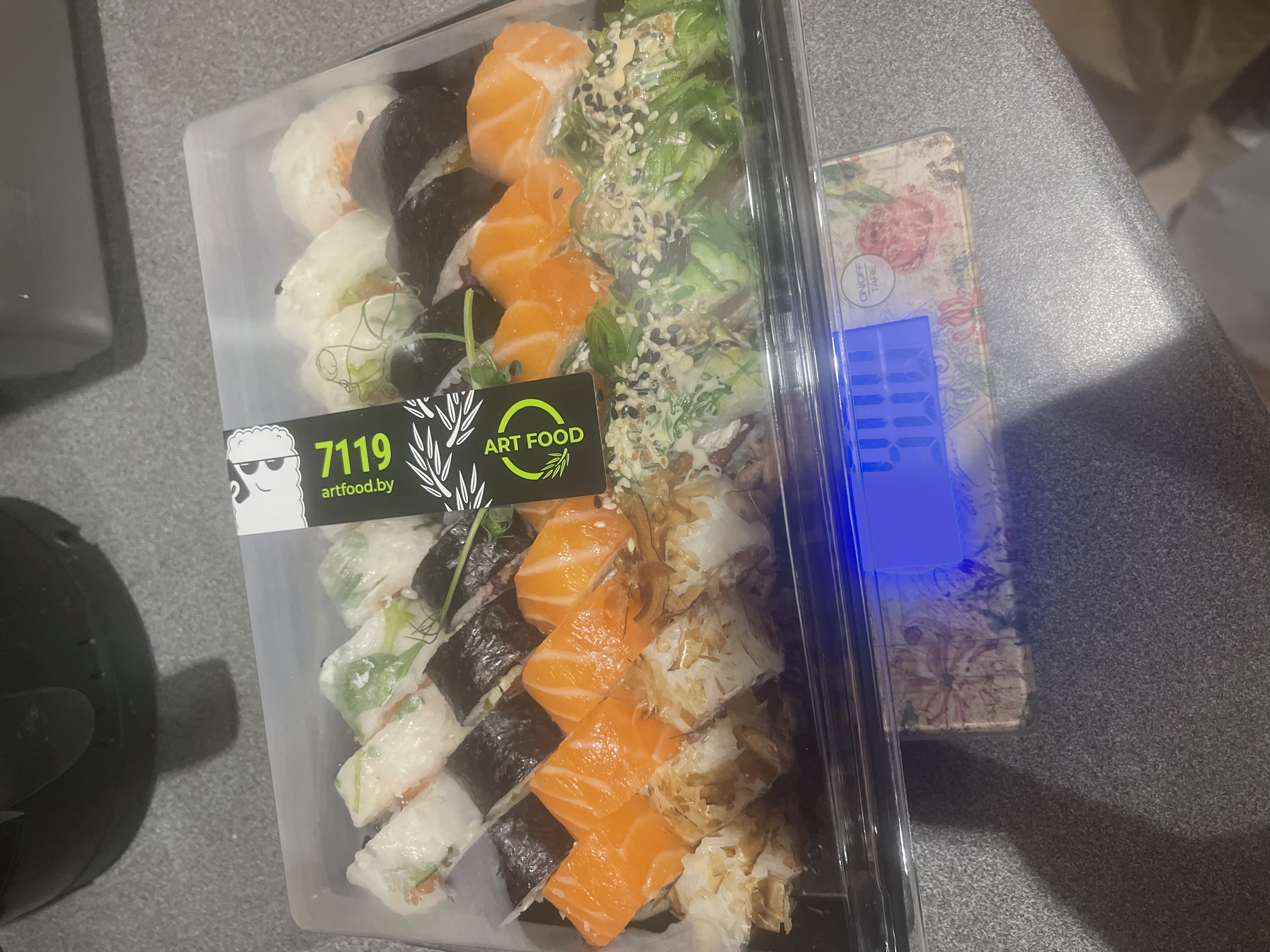 - Промокод дает право на скидку до 60% на суши-сеты от "ART FOOD"