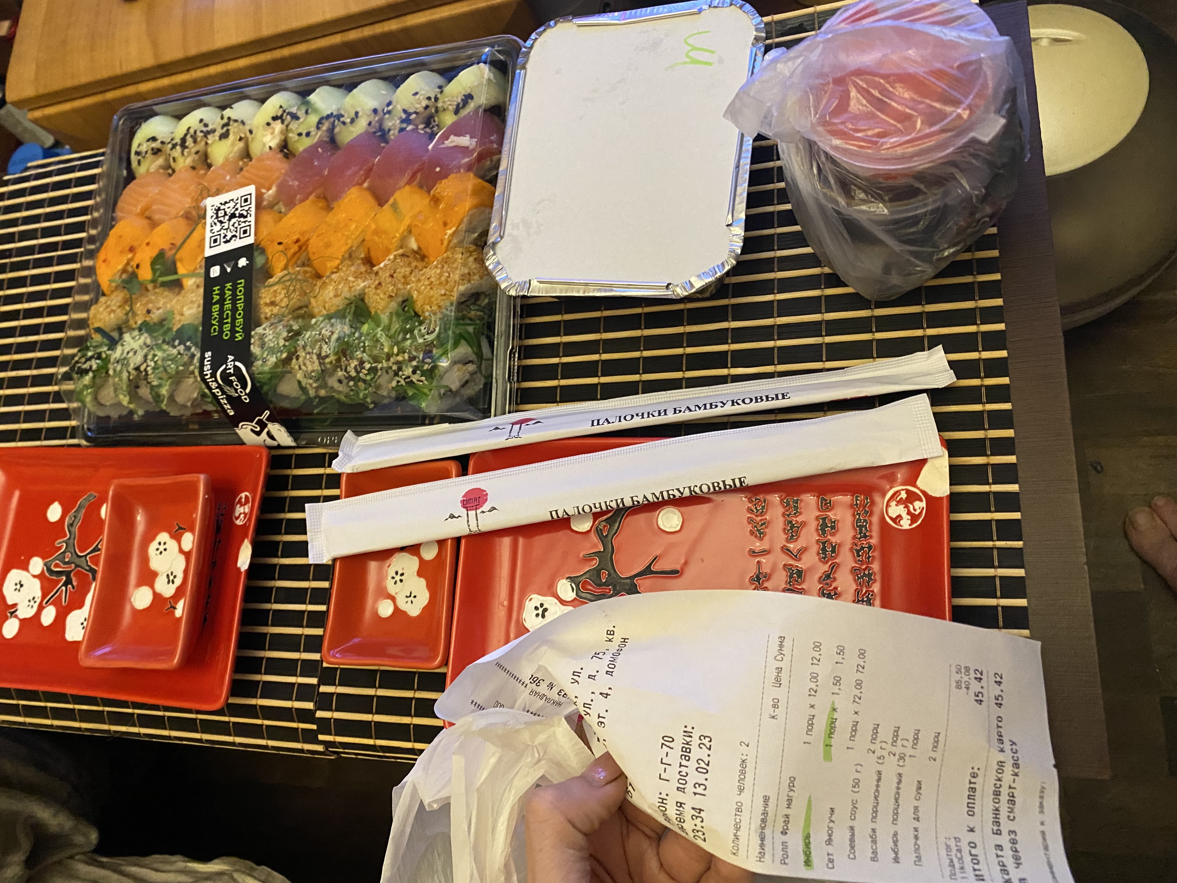 - Внимание! К предзаказу на 31.12 доступны: сет "Новогодний", "Мамины радости", "Макеба", "Ясахи", "Филадельфия", "Каприз", "Игра в кальмара", "Можно всё!", "Мама босс", "Палитра вкуса", "Муж купил", "Биг босс", "Мафия", "Манга", роллы Урамаки, все напитки и гарниры