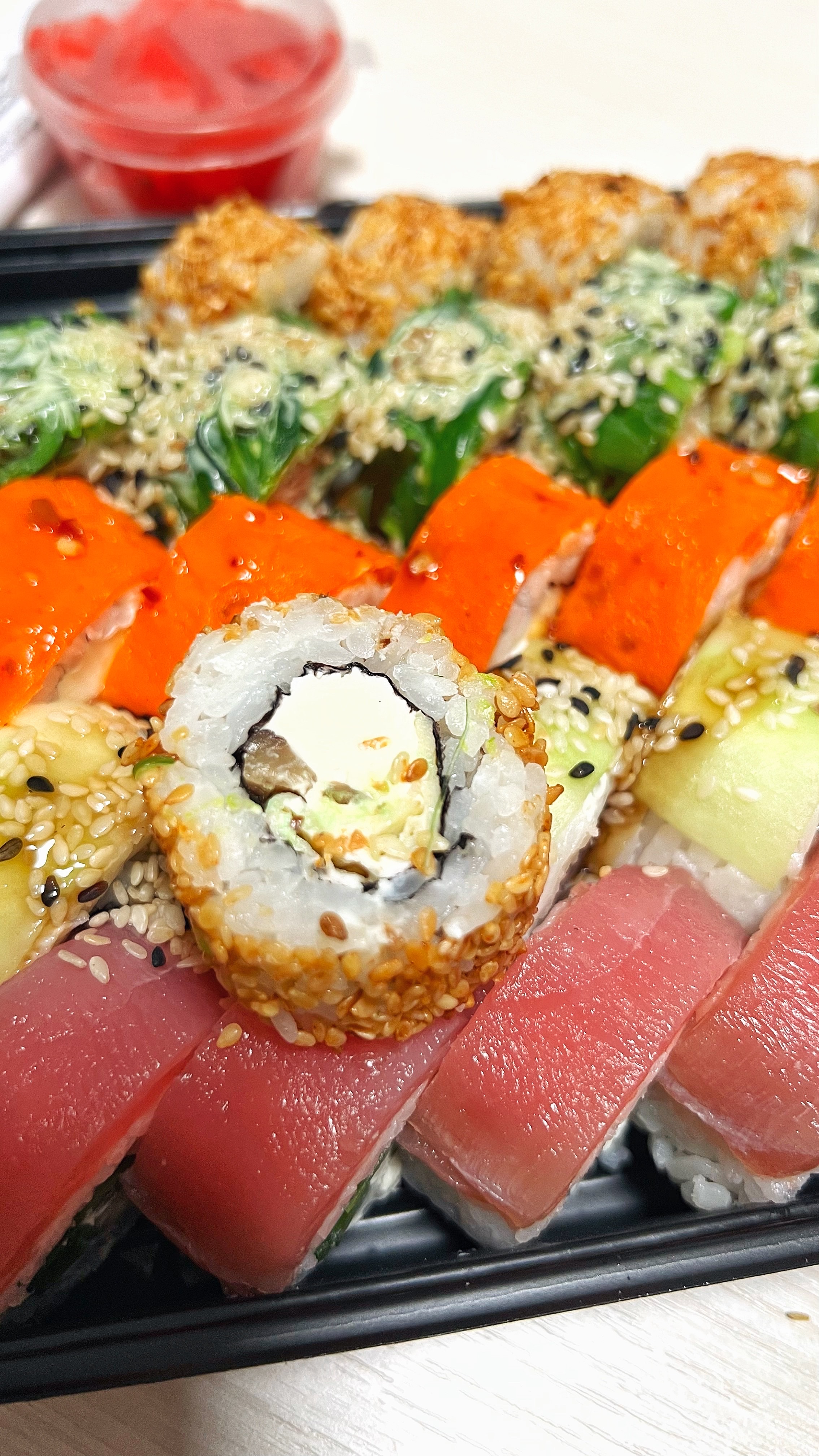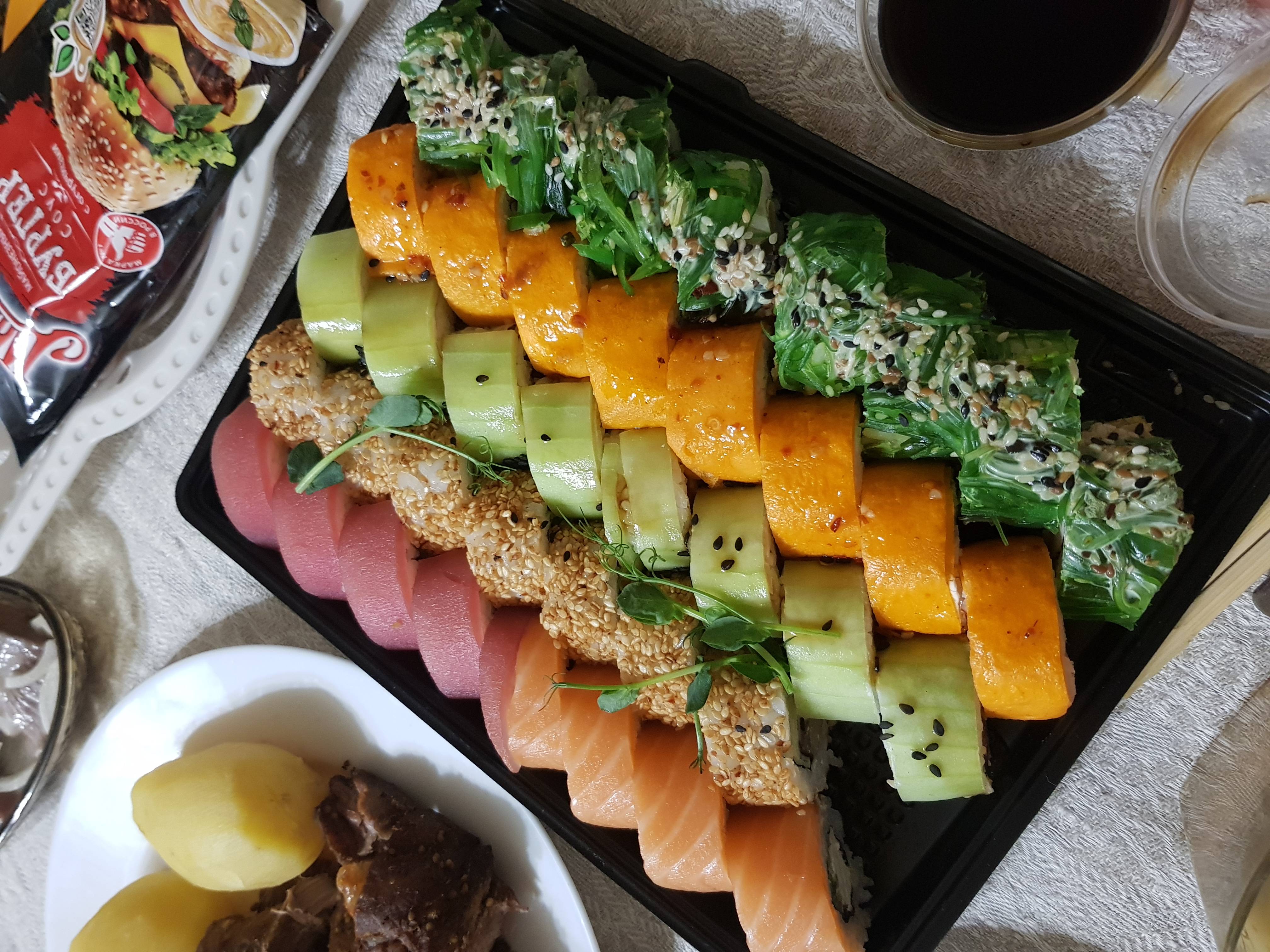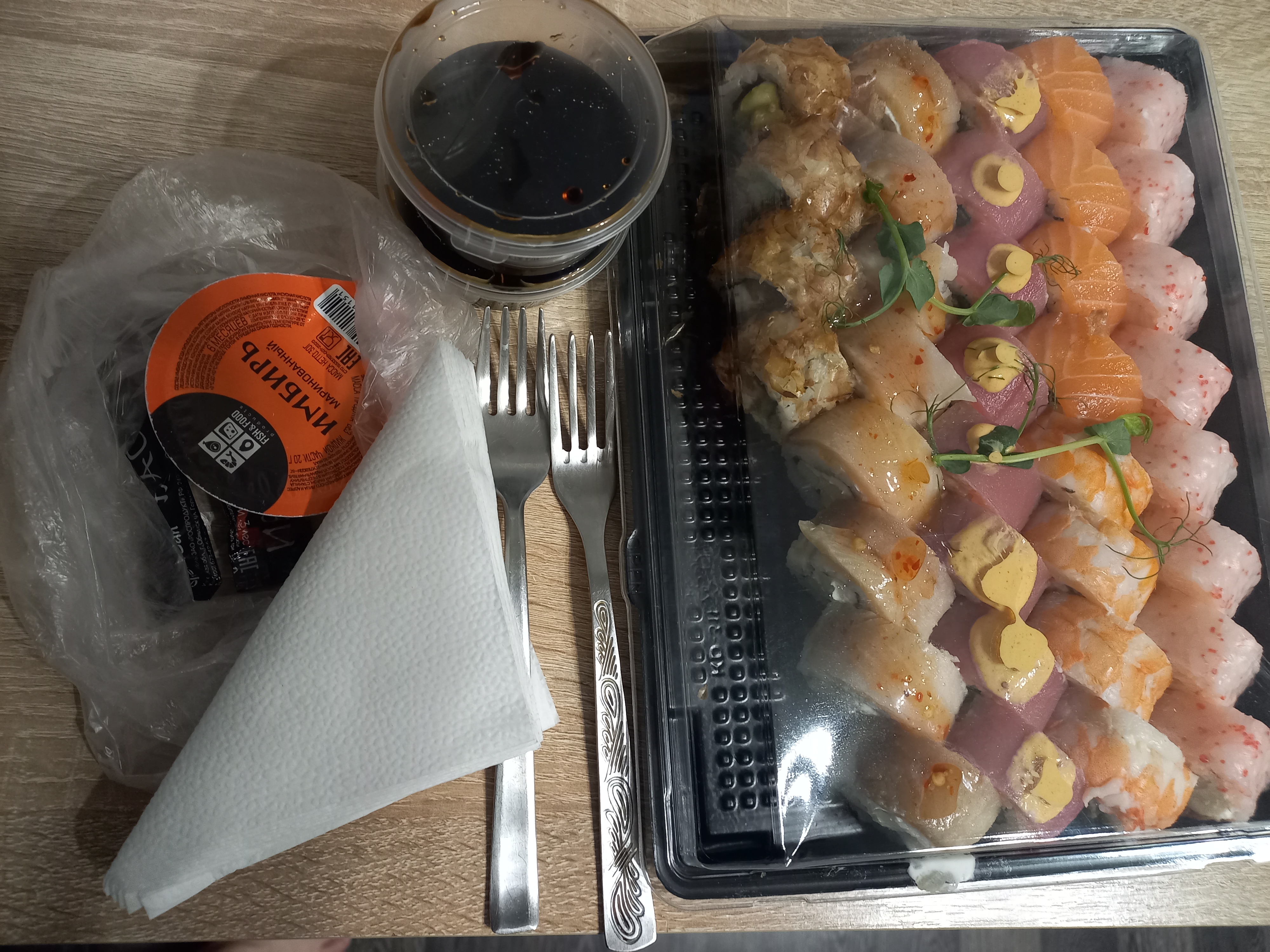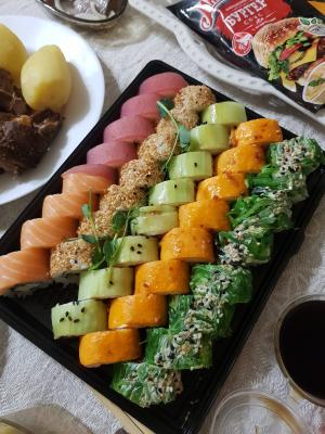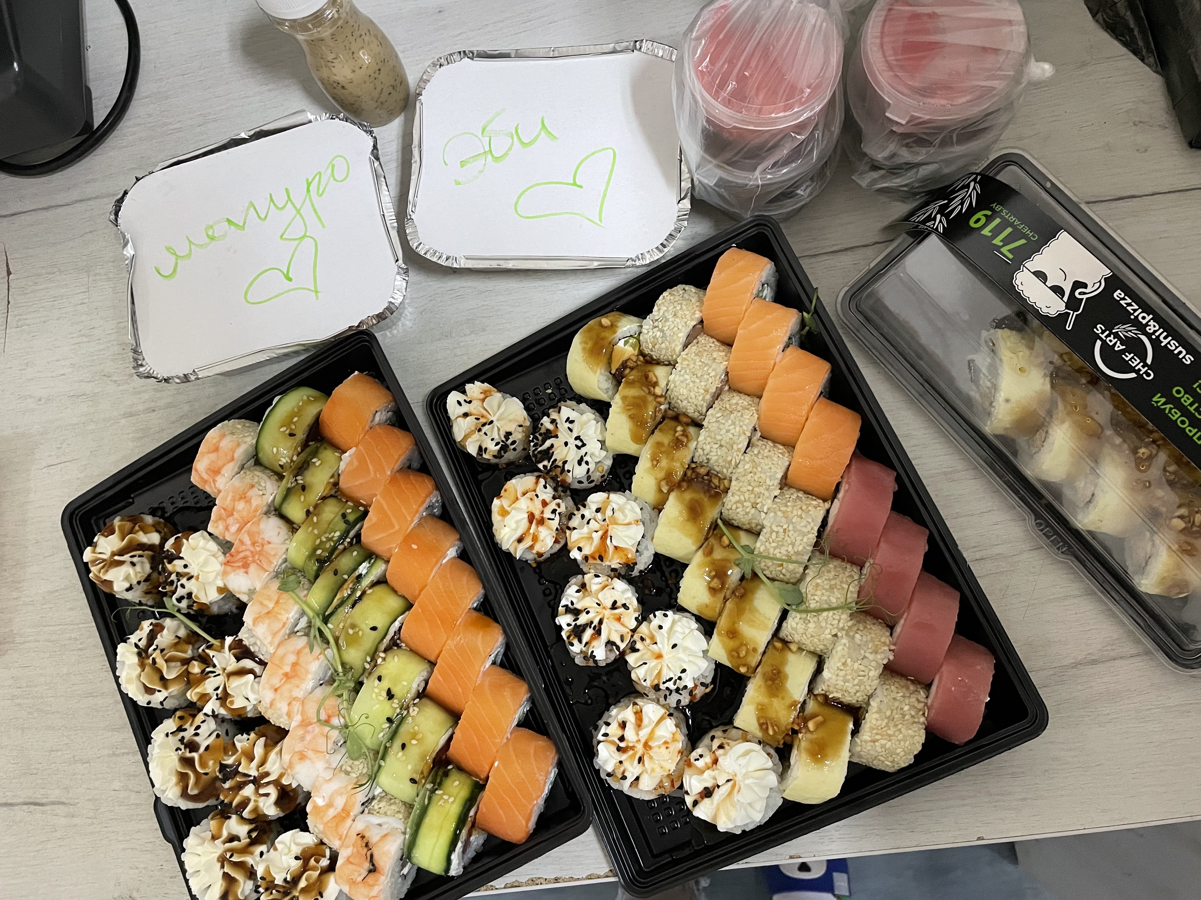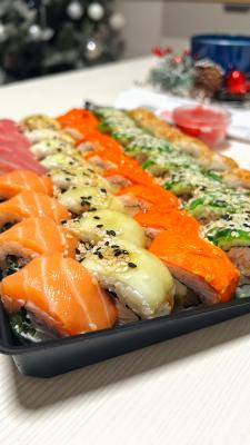 - Внимание! К предзаказу на 31.12 доступны: сет "Новогодний", "Мамины радости", "Макеба", "Ясахи", "Филадельфия", "Каприз", "Игра в кальмара", "Можно всё!", "Мама босс", "Палитра вкуса", "Муж купил", "Биг босс", "Мафия", "Манга", роллы Урамаки, все напитки и гарниры