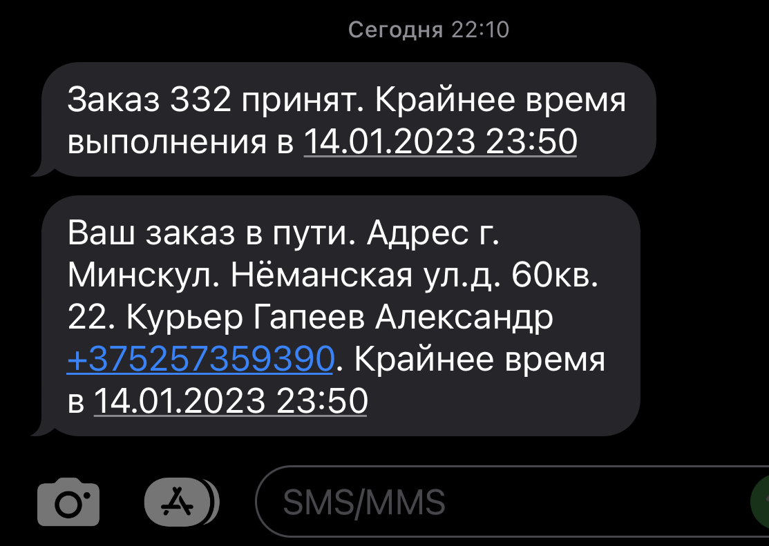 - Время доставки: от 60 минут (доступны все типы оплат)