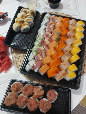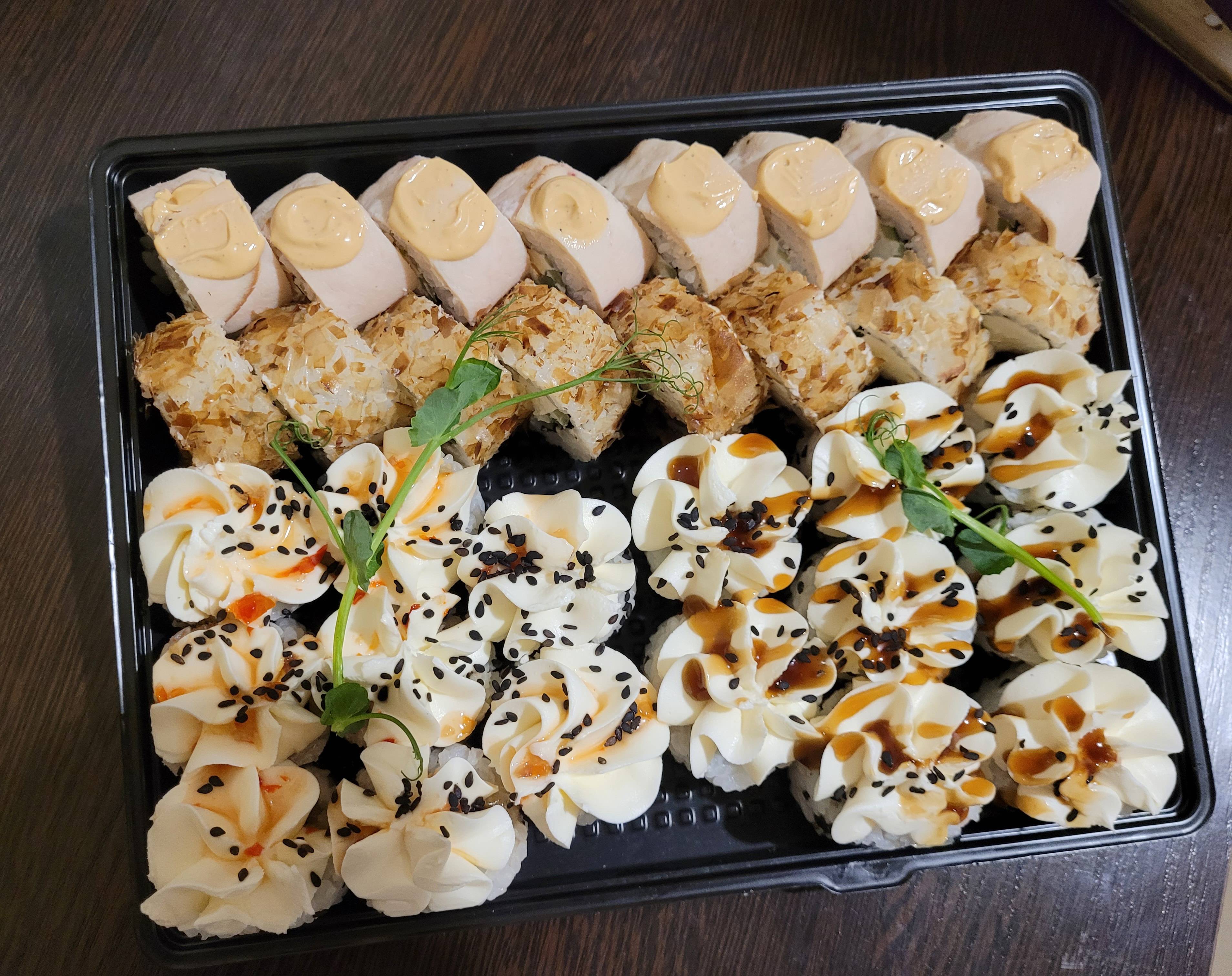 - Внимание! К предзаказу на 31.12 доступны: сет "Новогодний", "Мамины радости", "Макеба", "Ясахи", "Филадельфия", "Каприз", "Игра в кальмара", "Можно всё!", "Мама босс", "Палитра вкуса", "Муж купил", "Биг босс", "Мафия", "Манга", роллы Урамаки, все напитки и гарниры
