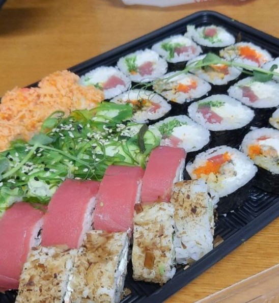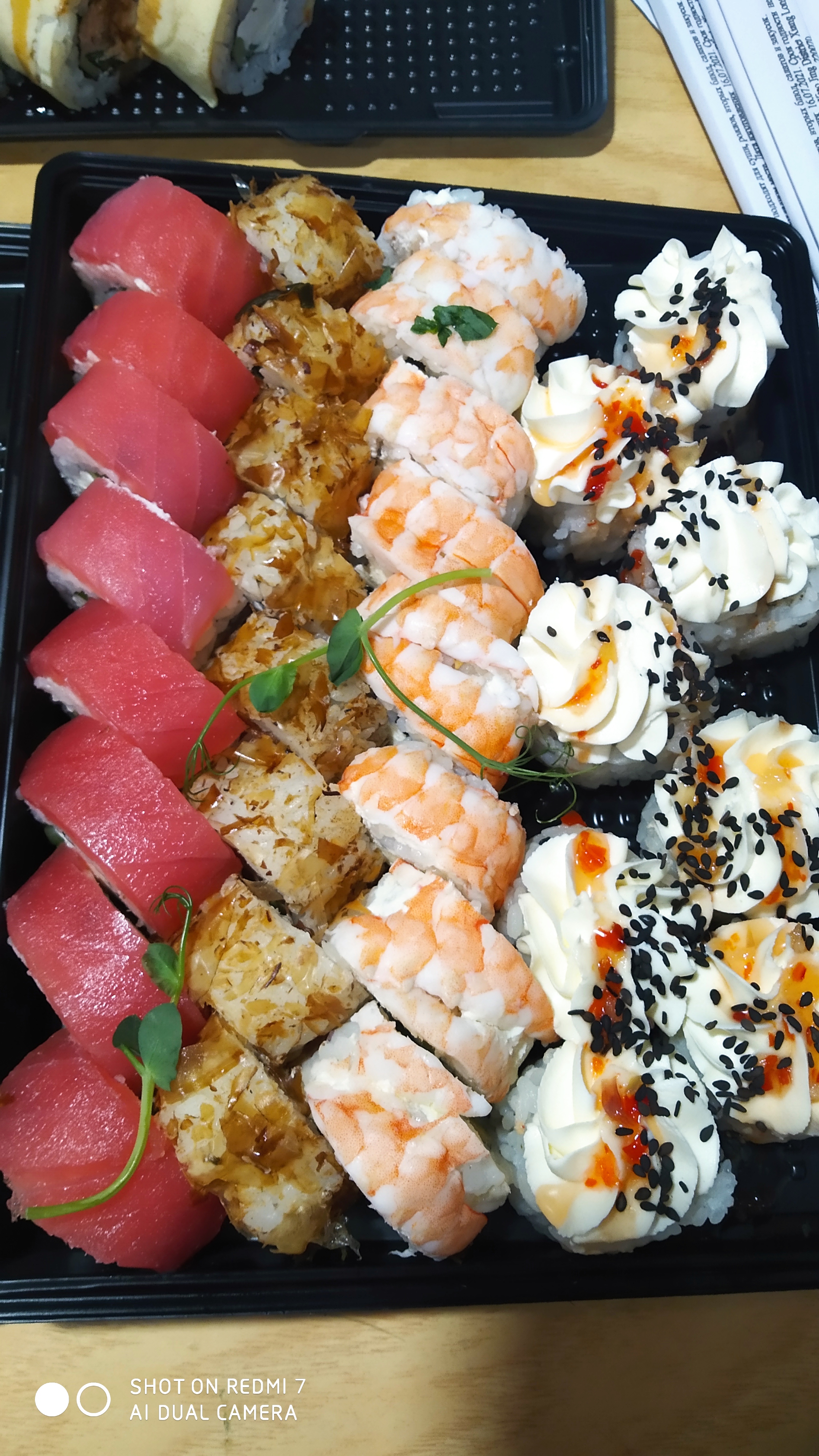 Очень вкусные суши) заказывали сет Юджин. Самовывоз со Свердлова 32. Надо поднимать рейтинг) большие,достойные суши по приемлемой цене)🍣 🍣 🍣 🍣