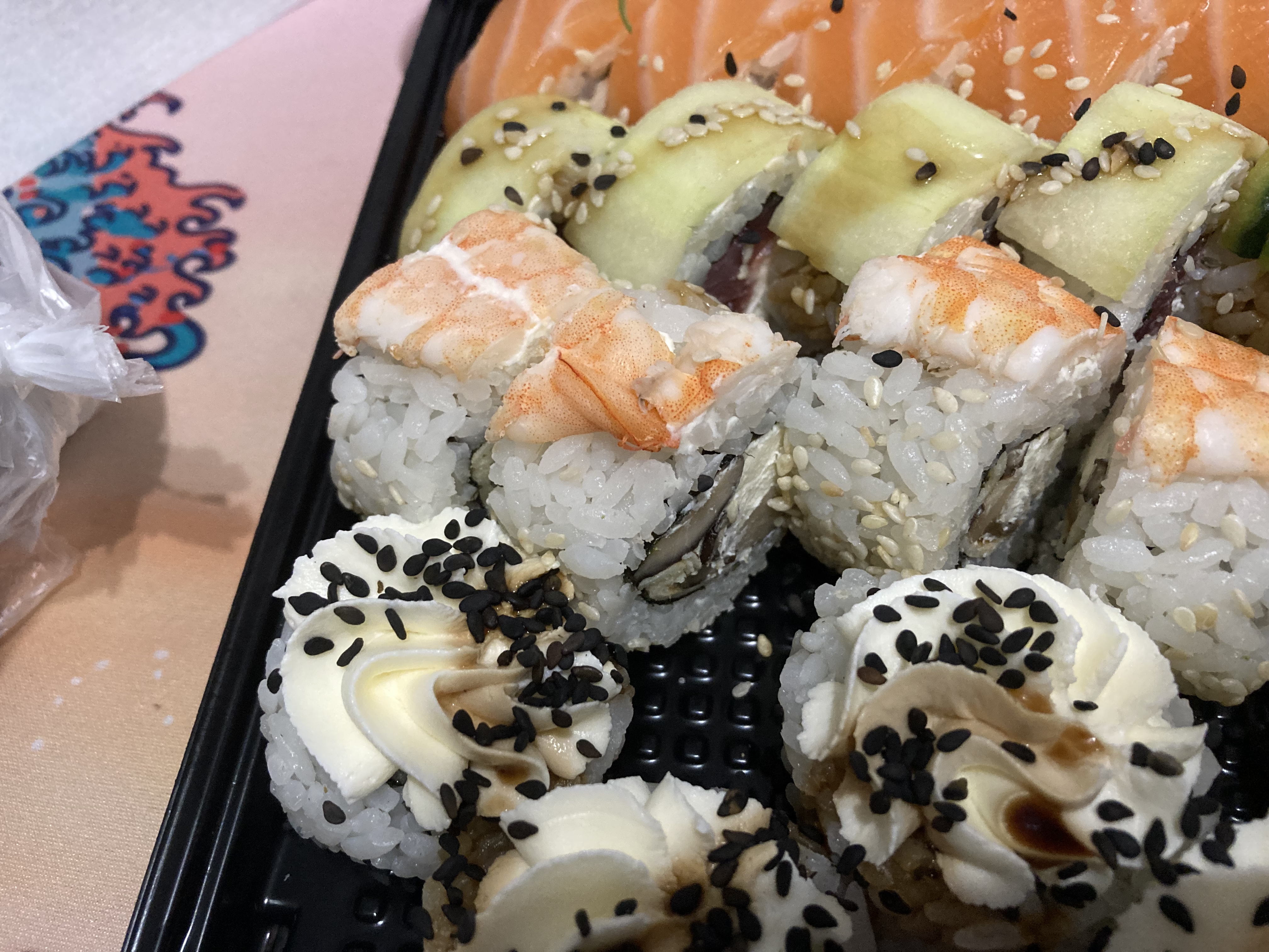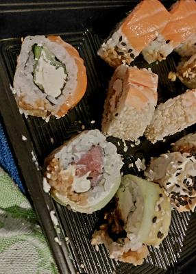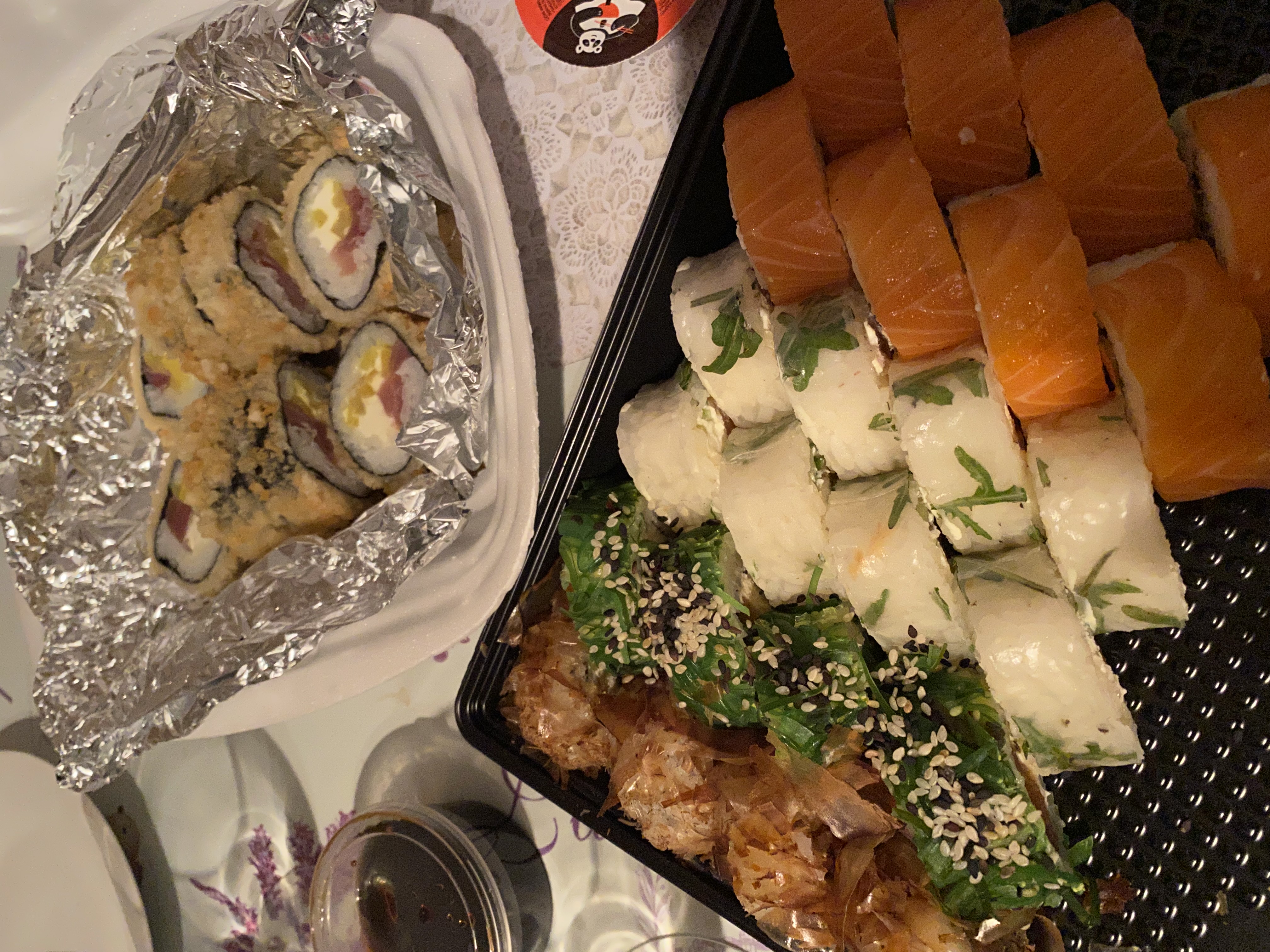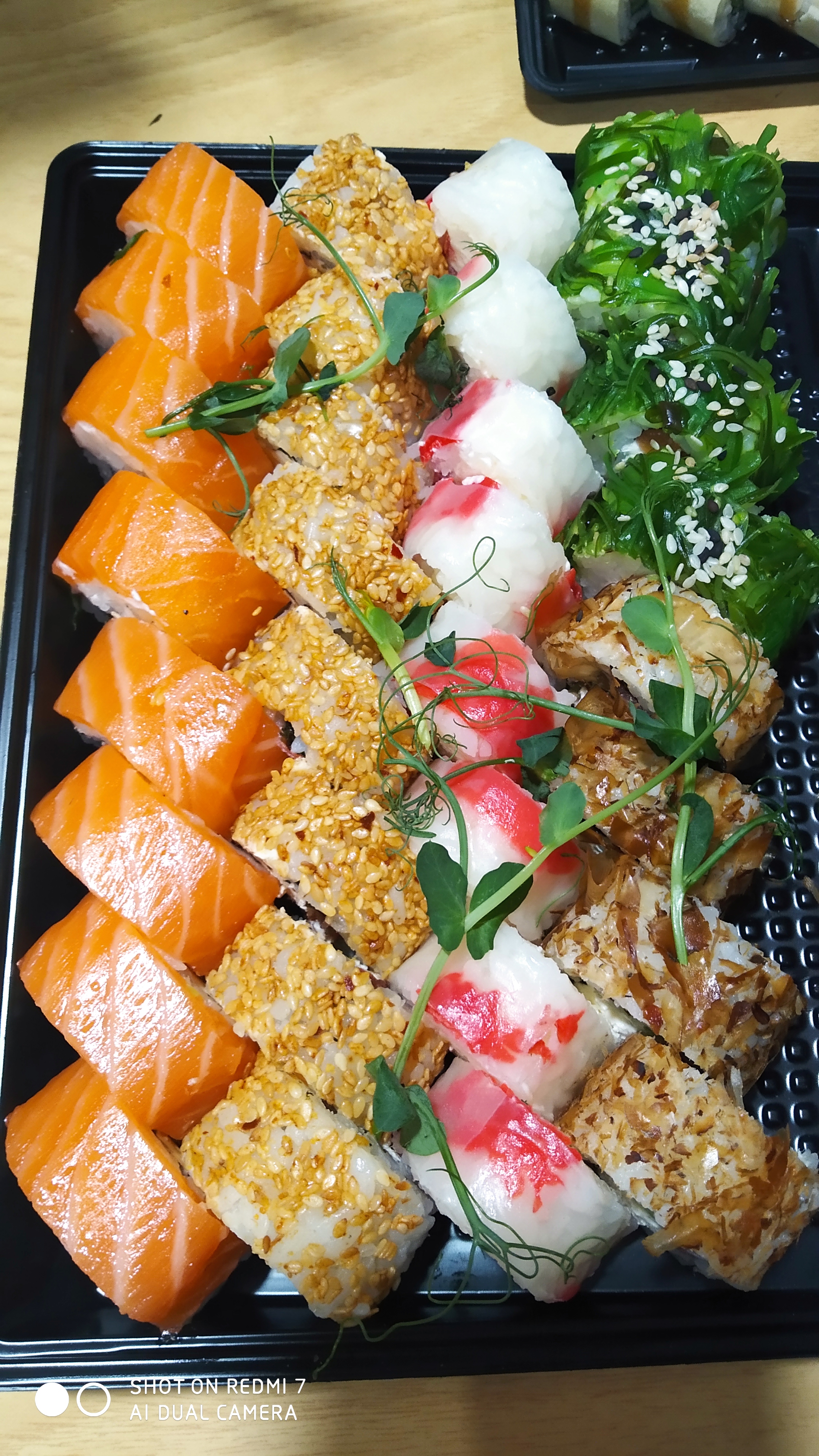 По случаю дня рождения дочери воспользовались купоном со сливок и заказали в среду суши в ART FOOD самовывозом. Заказываем уже не первый раз со Свердлова, 32 и всегда довольны и пиццами, и роллами. В этот раз заказывали сеты Нирвана и Каноха. В подарок шел ролл "Лосось мания". Всё было очень вкусно, свежее, роллы скручены хорошо, ничего не разваливается. Отличные роллы! Но мужу попалась деревянная острая щепка, которая чуть не проколола язык. Это подпортило впечатление.😕 Будьте внимательны!!! Если бы не этот момент, то в остальном роллы превосходные!