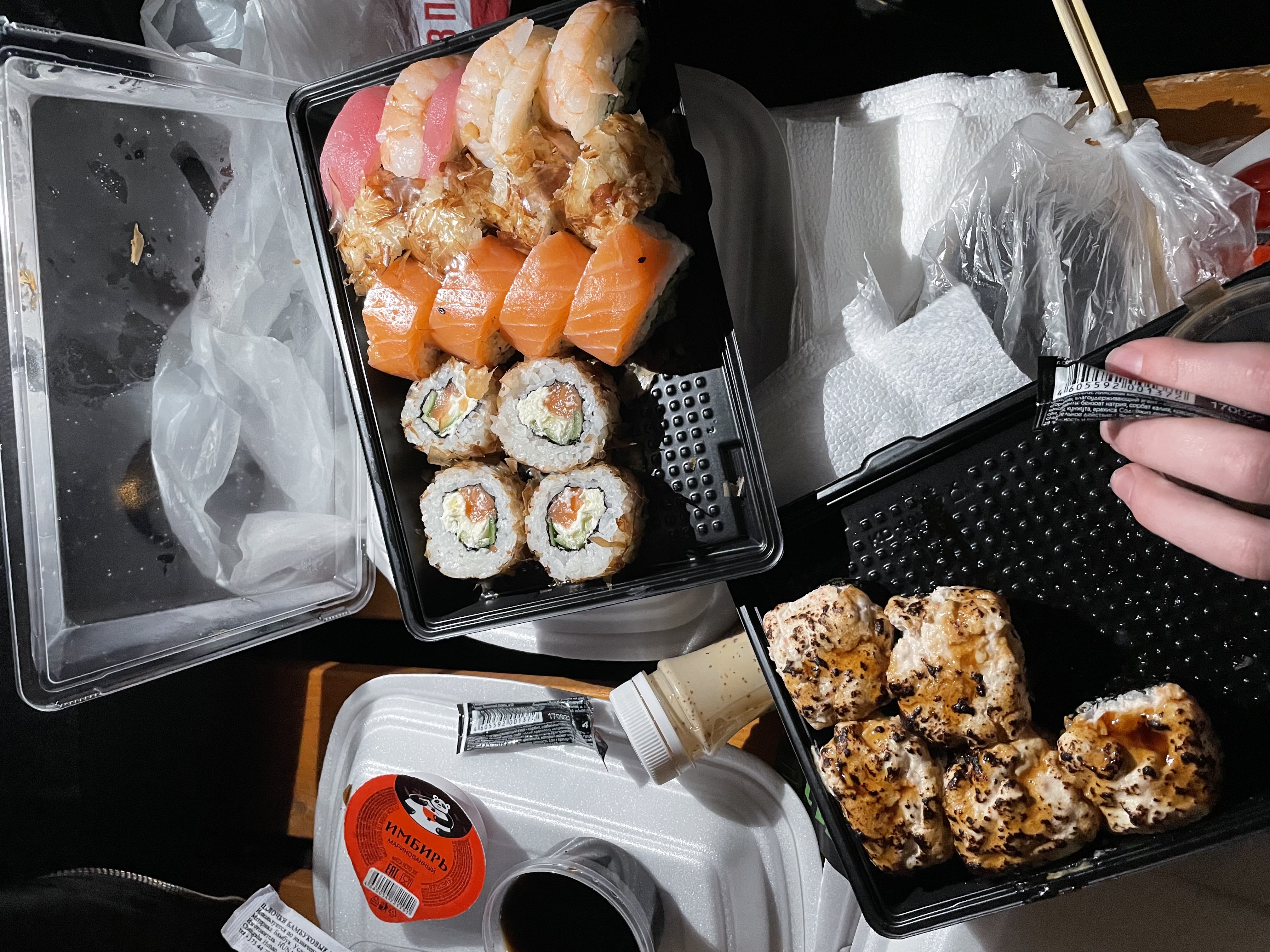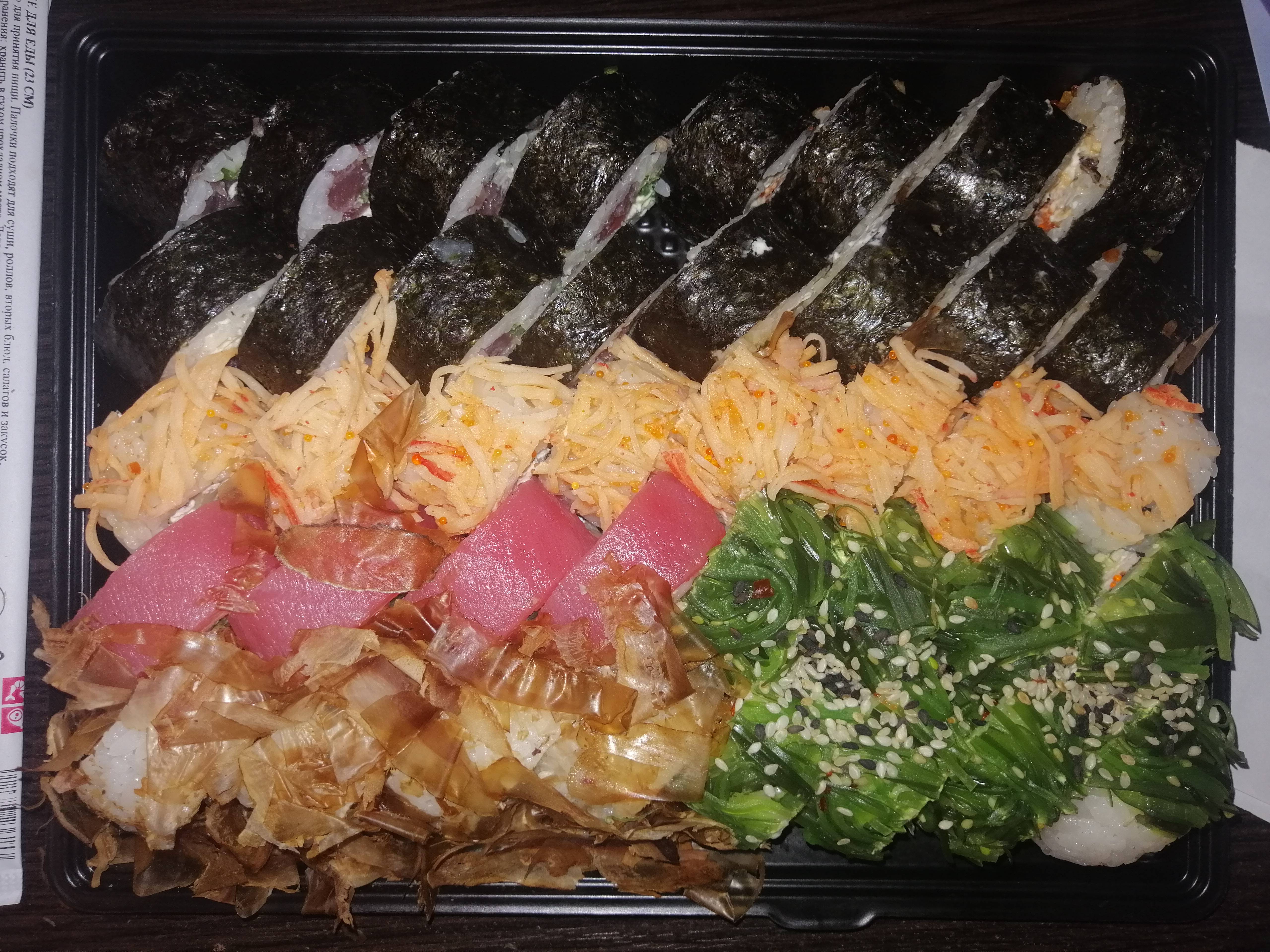 - Внимание! К предзаказу на 31.12 доступны: сет "Новогодний", "Мамины радости", "Макеба", "Ясахи", "Филадельфия", "Каприз", "Игра в кальмара", "Можно всё!", "Мама босс", "Палитра вкуса", "Муж купил", "Биг босс", "Мафия", "Манга", роллы Урамаки, все напитки и гарниры