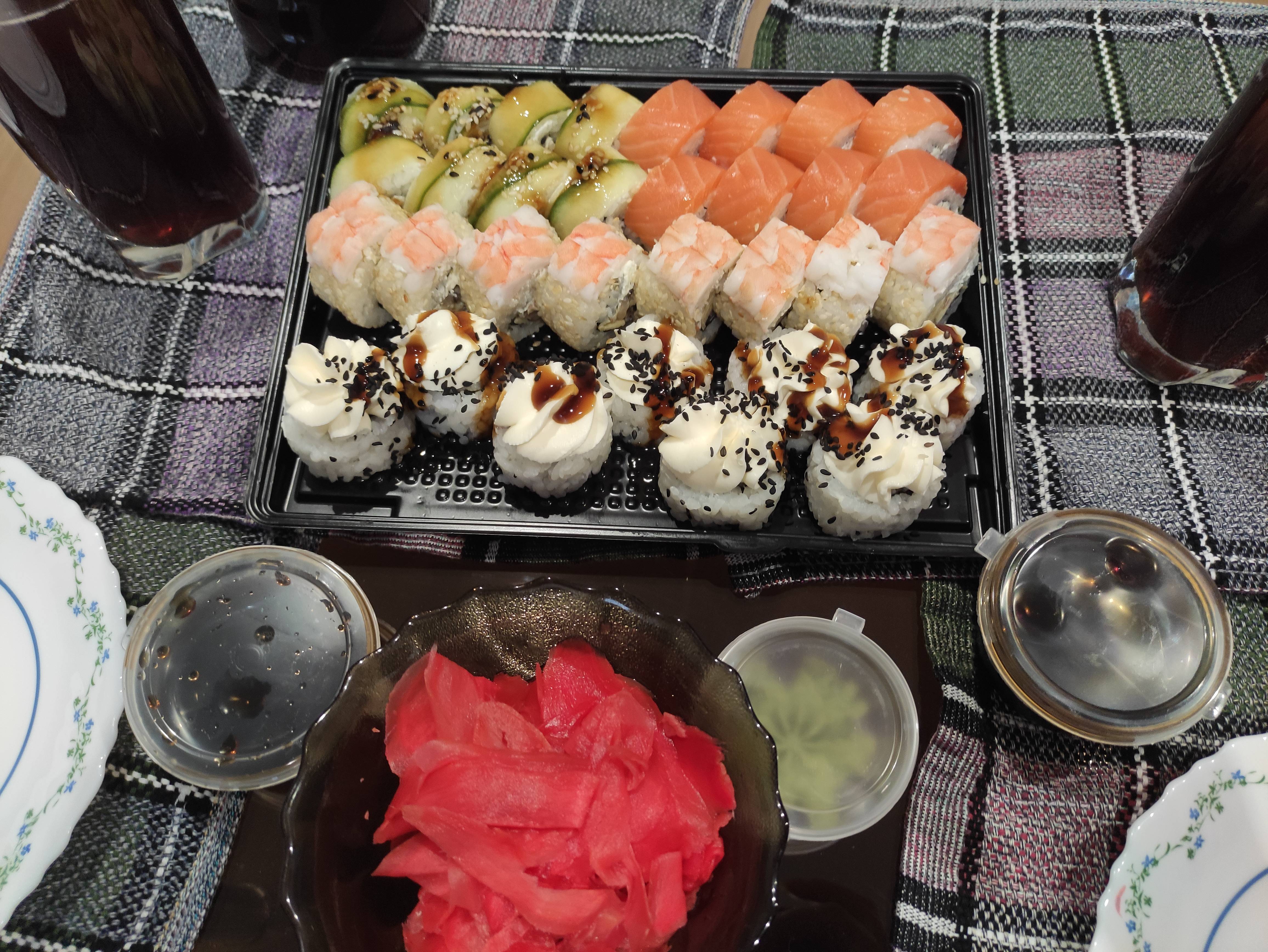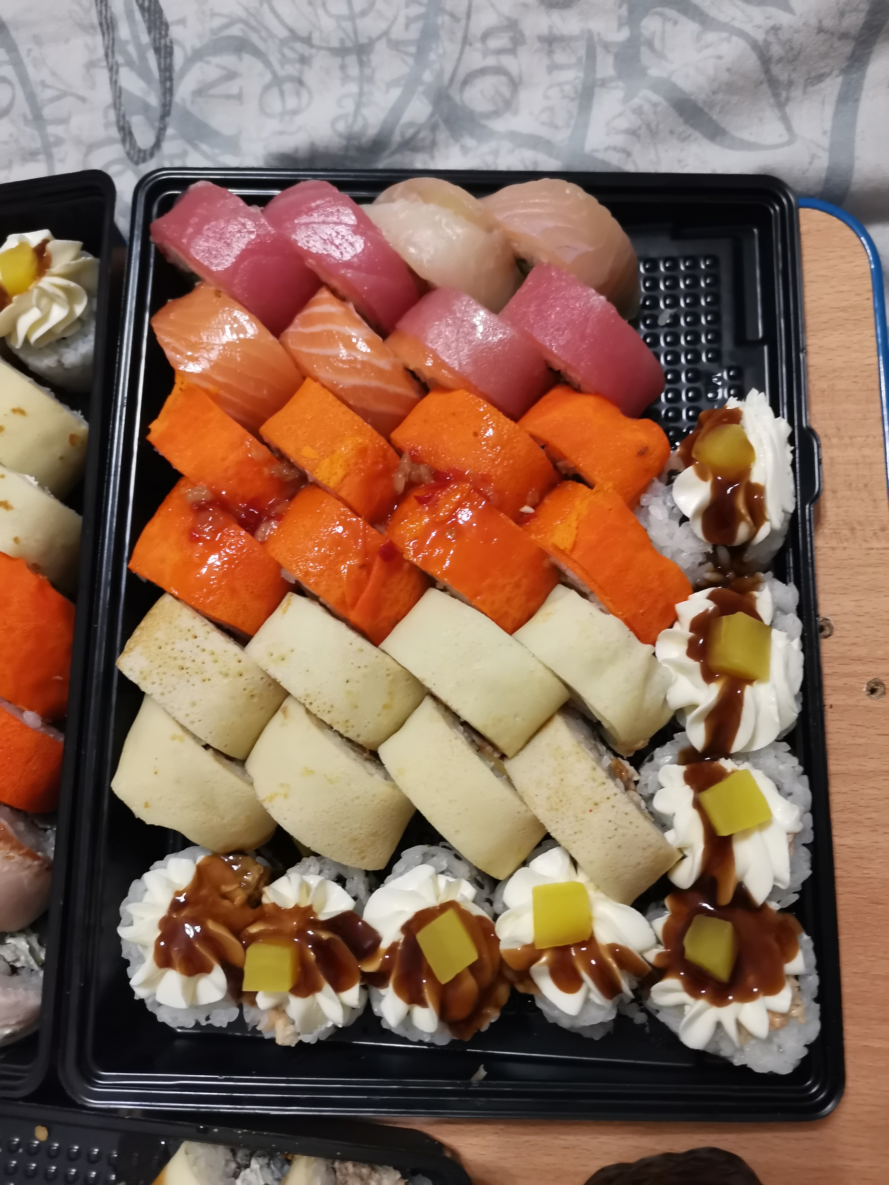 - Внимание! К предзаказу на 31.12 доступны: сет "Новогодний", "Мамины радости", "Макеба", "Ясахи", "Филадельфия", "Каприз", "Игра в кальмара", "Можно всё!", "Мама босс", "Палитра вкуса", "Муж купил", "Биг босс", "Мафия", "Манга", роллы Урамаки, все напитки и гарниры