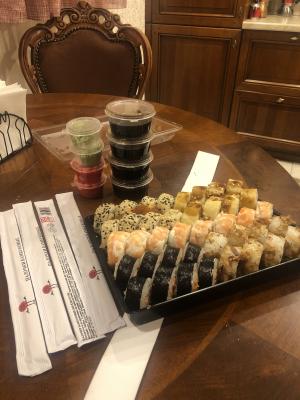 - Внимание! К предзаказу на 31.12 доступны: сет "Новогодний", "Мамины радости", "Макеба", "Ясахи", "Филадельфия", "Каприз", "Игра в кальмара", "Можно всё!", "Мама босс", "Палитра вкуса", "Муж купил", "Биг босс", "Мафия", "Манга", роллы Урамаки, все напитки и гарниры