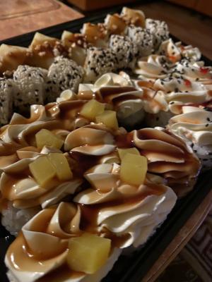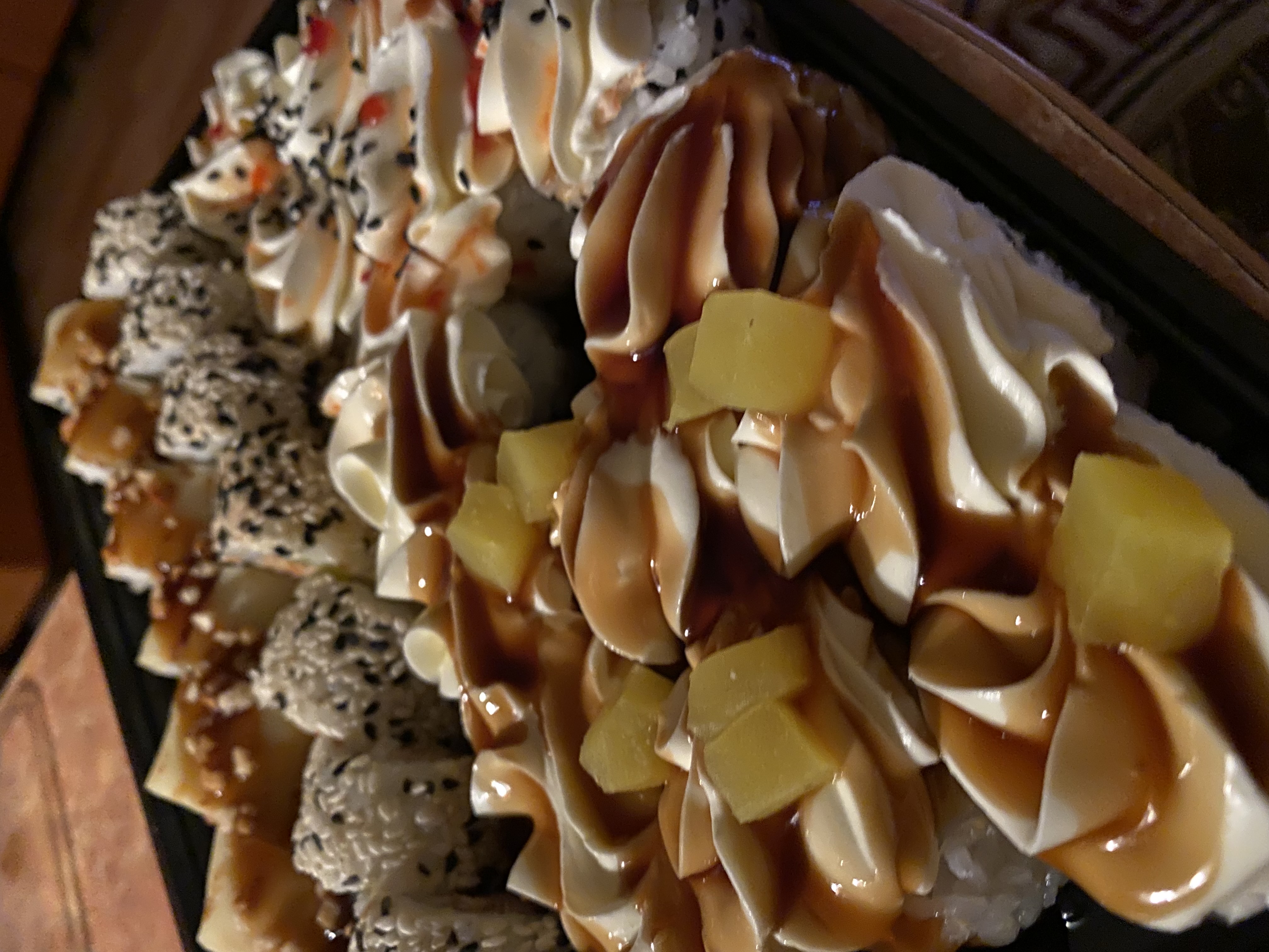 - Внимание! К предзаказу на 31.12 доступны: сет "Новогодний", "Мамины радости", "Макеба", "Ясахи", "Филадельфия", "Каприз", "Игра в кальмара", "Можно всё!", "Мама босс", "Палитра вкуса", "Муж купил", "Биг босс", "Мафия", "Манга", роллы Урамаки, все напитки и гарниры