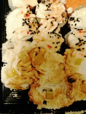 Привезли не суши, а месево. По вкусу тоже такое себе, суши разваливаются, сыра совсем мало.