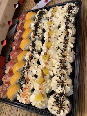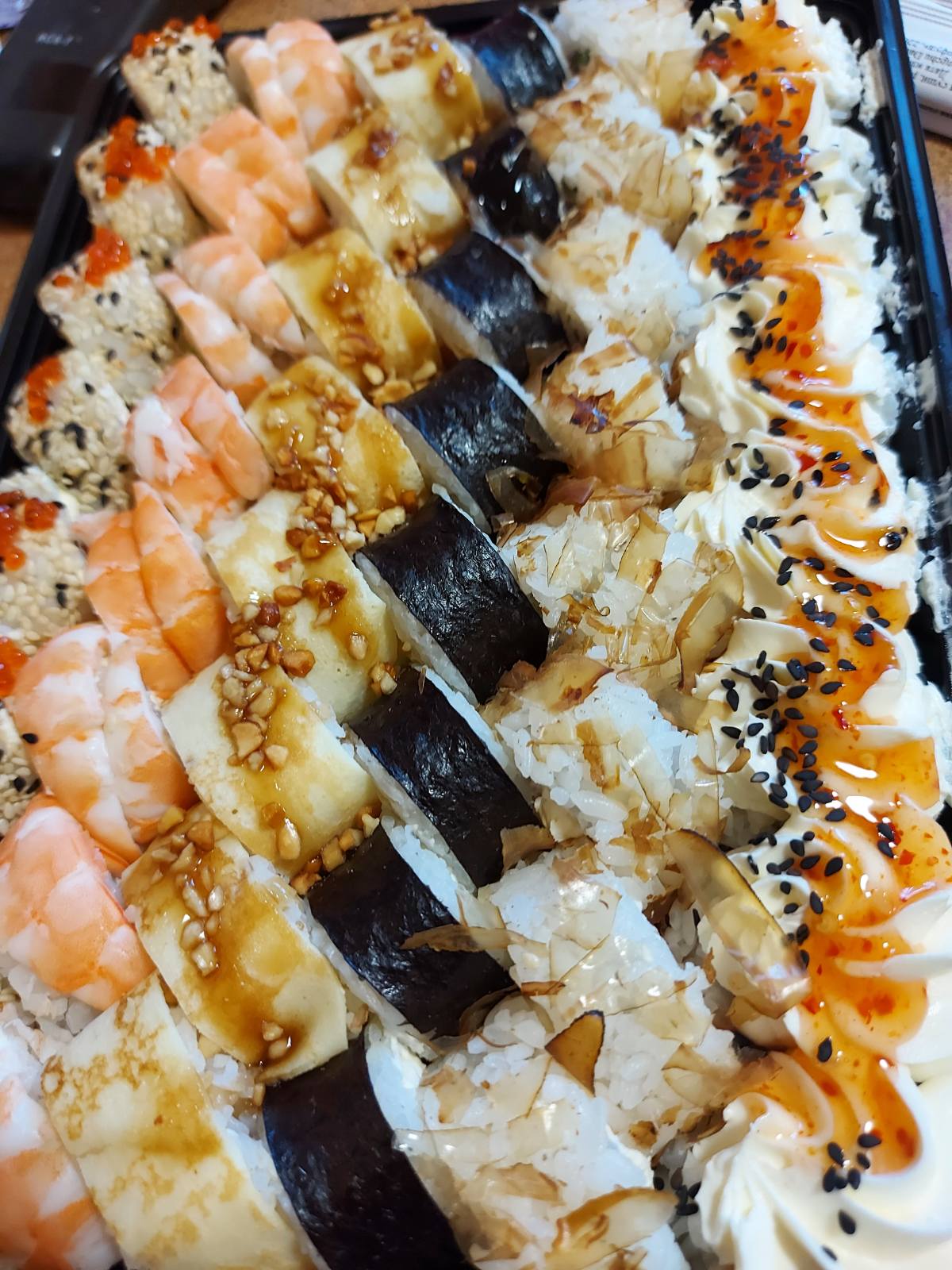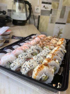 - Внимание! К предзаказу на 31.12 доступны: сет "Новогодний", "Мамины радости", "Макеба", "Ясахи", "Филадельфия", "Каприз", "Игра в кальмара", "Можно всё!", "Мама босс", "Палитра вкуса", "Муж купил", "Биг босс", "Мафия", "Манга", роллы Урамаки, все напитки и гарниры
