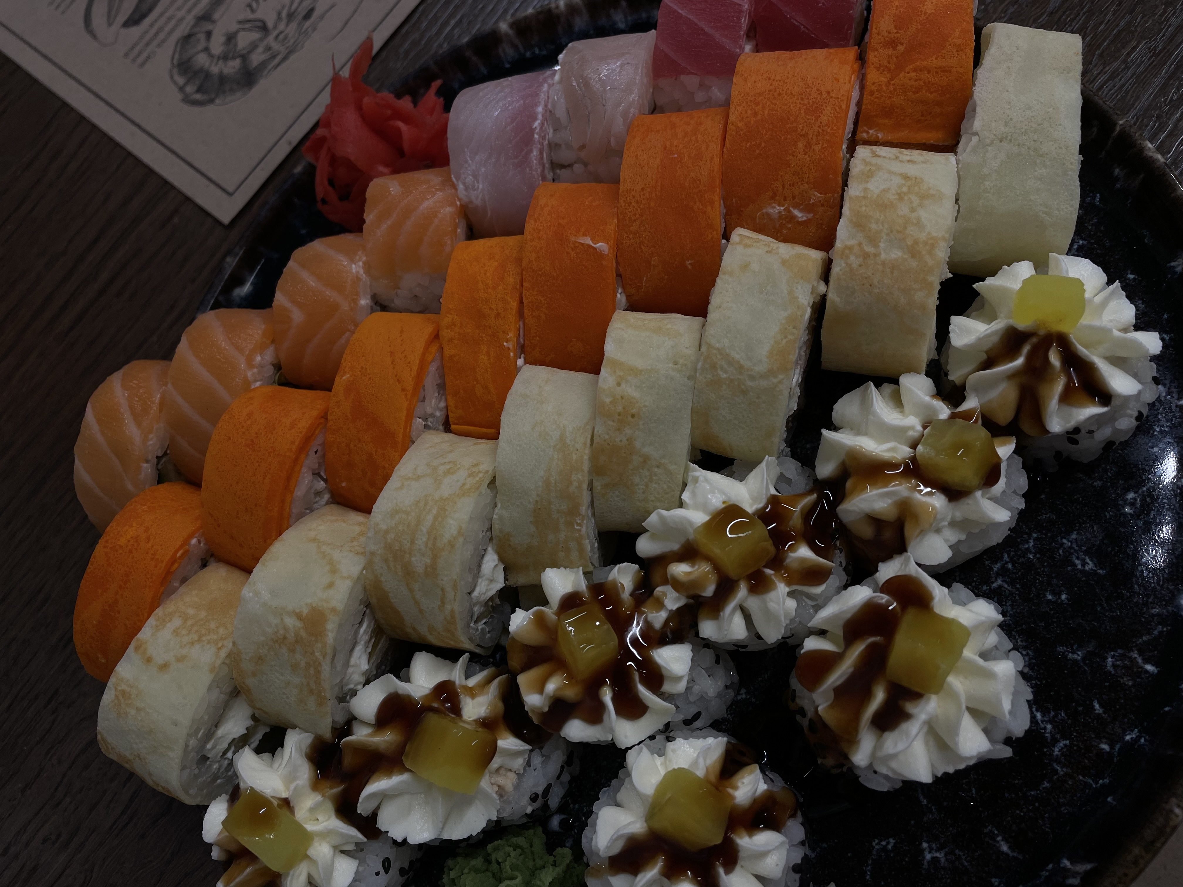 - Внимание! К предзаказу на 31.12 доступны: сет "Новогодний", "Мамины радости", "Макеба", "Ясахи", "Филадельфия", "Каприз", "Игра в кальмара", "Можно всё!", "Мама босс", "Палитра вкуса", "Муж купил", "Биг босс", "Мафия", "Манга", роллы Урамаки, все напитки и гарниры