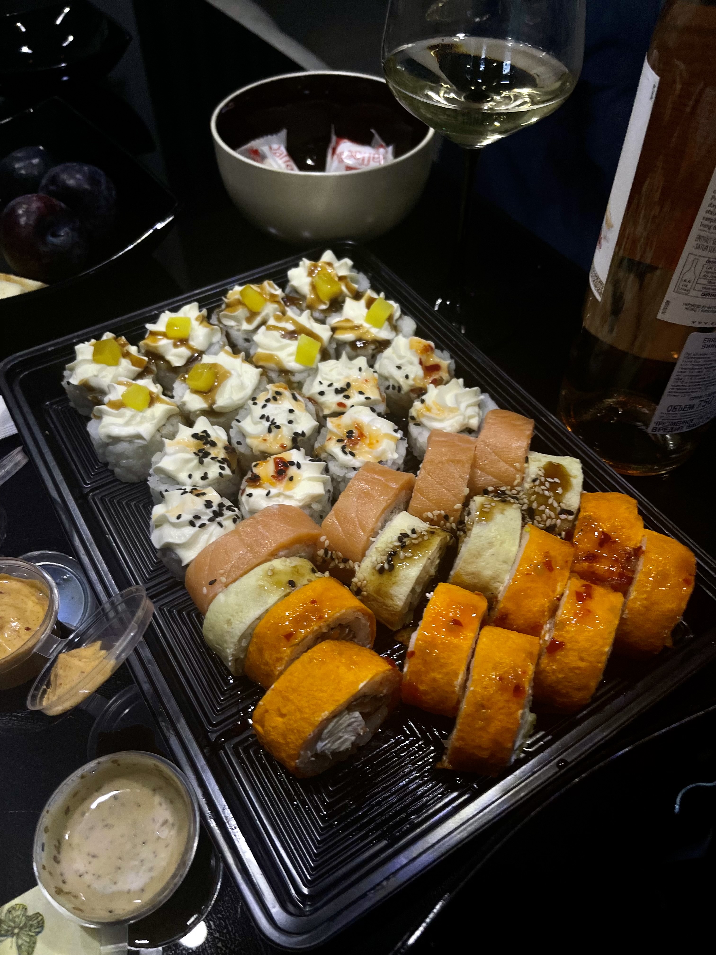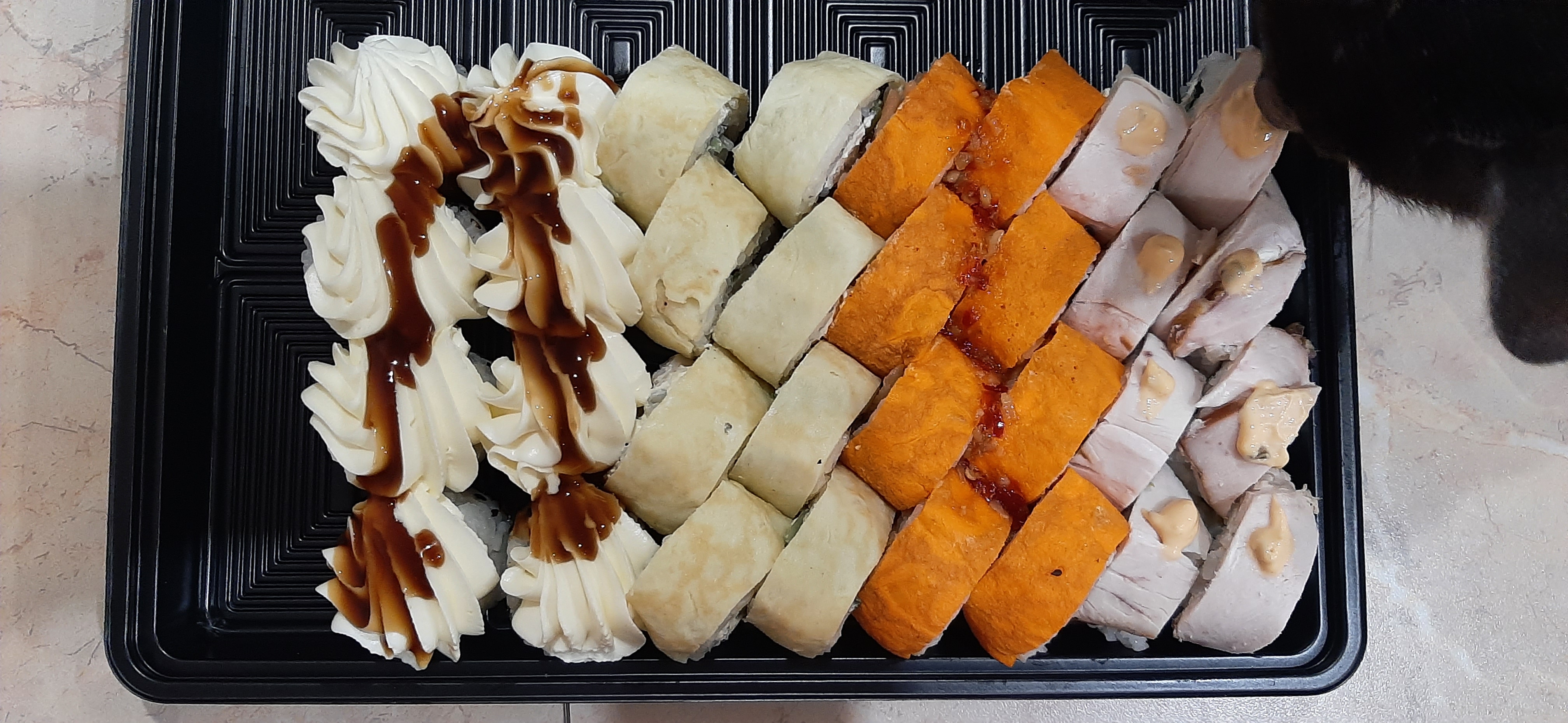 - Внимание! К предзаказу на 31.12 доступны: сет "Новогодний", "Мамины радости", "Макеба", "Ясахи", "Филадельфия", "Каприз", "Игра в кальмара", "Можно всё!", "Мама босс", "Палитра вкуса", "Муж купил", "Биг босс", "Мафия", "Манга", роллы Урамаки, все напитки и гарниры