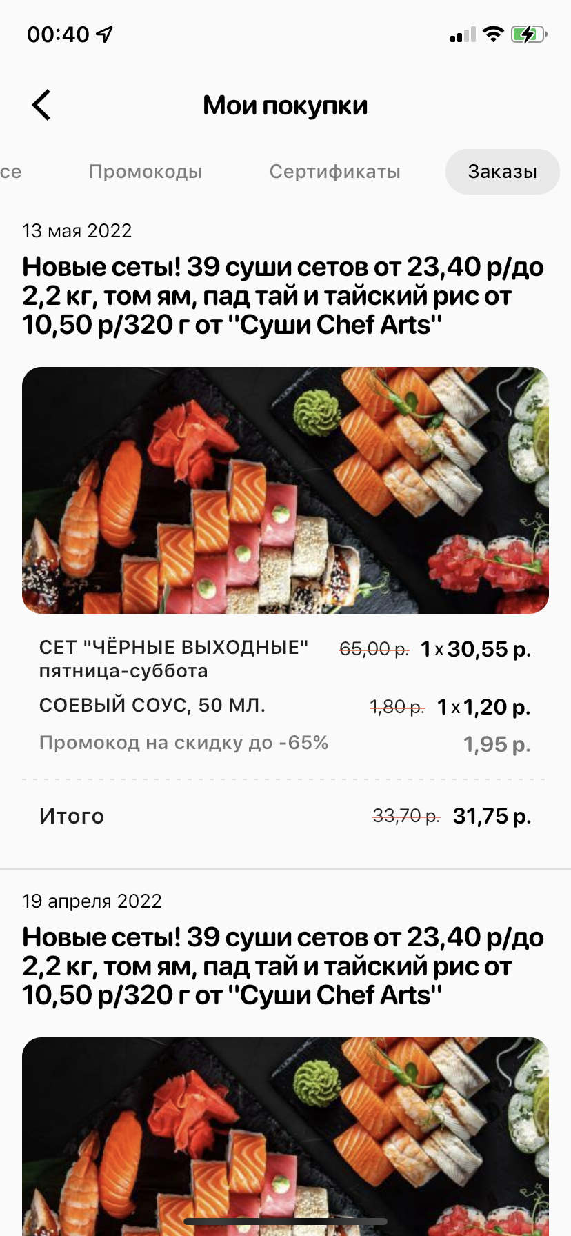 - Промокод дает право на скидку до 60% на суши-сеты от "ART FOOD"