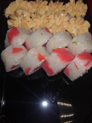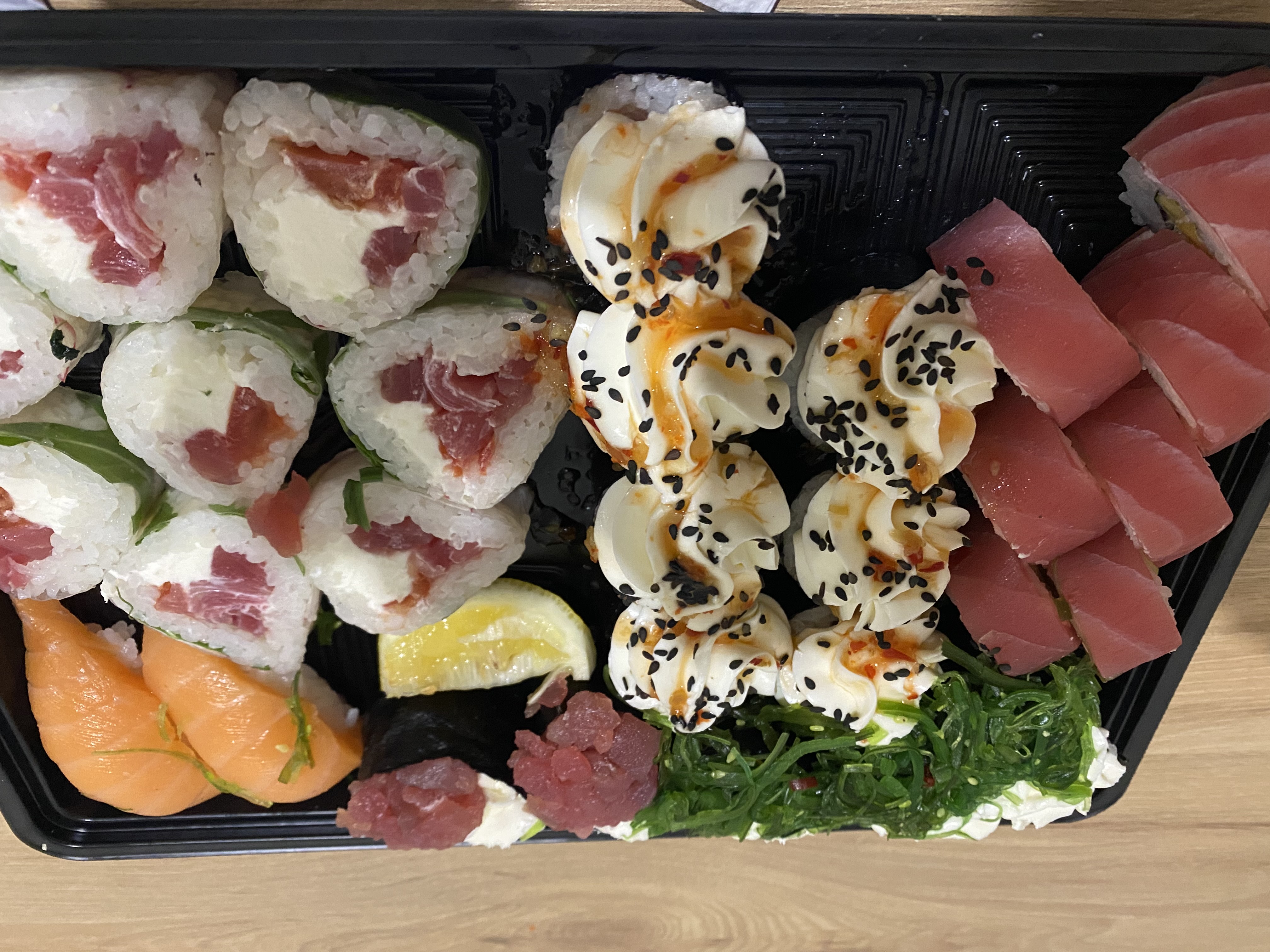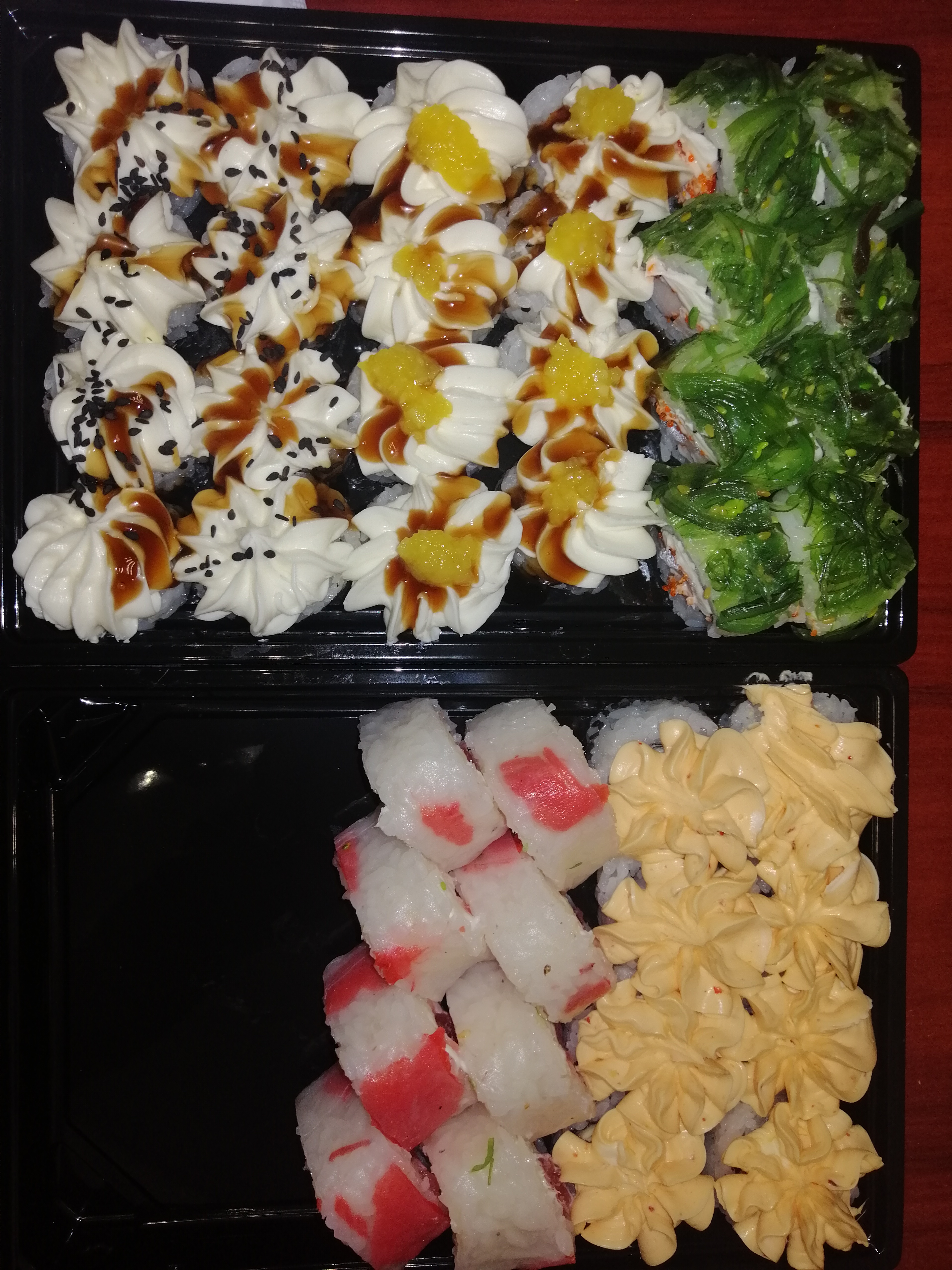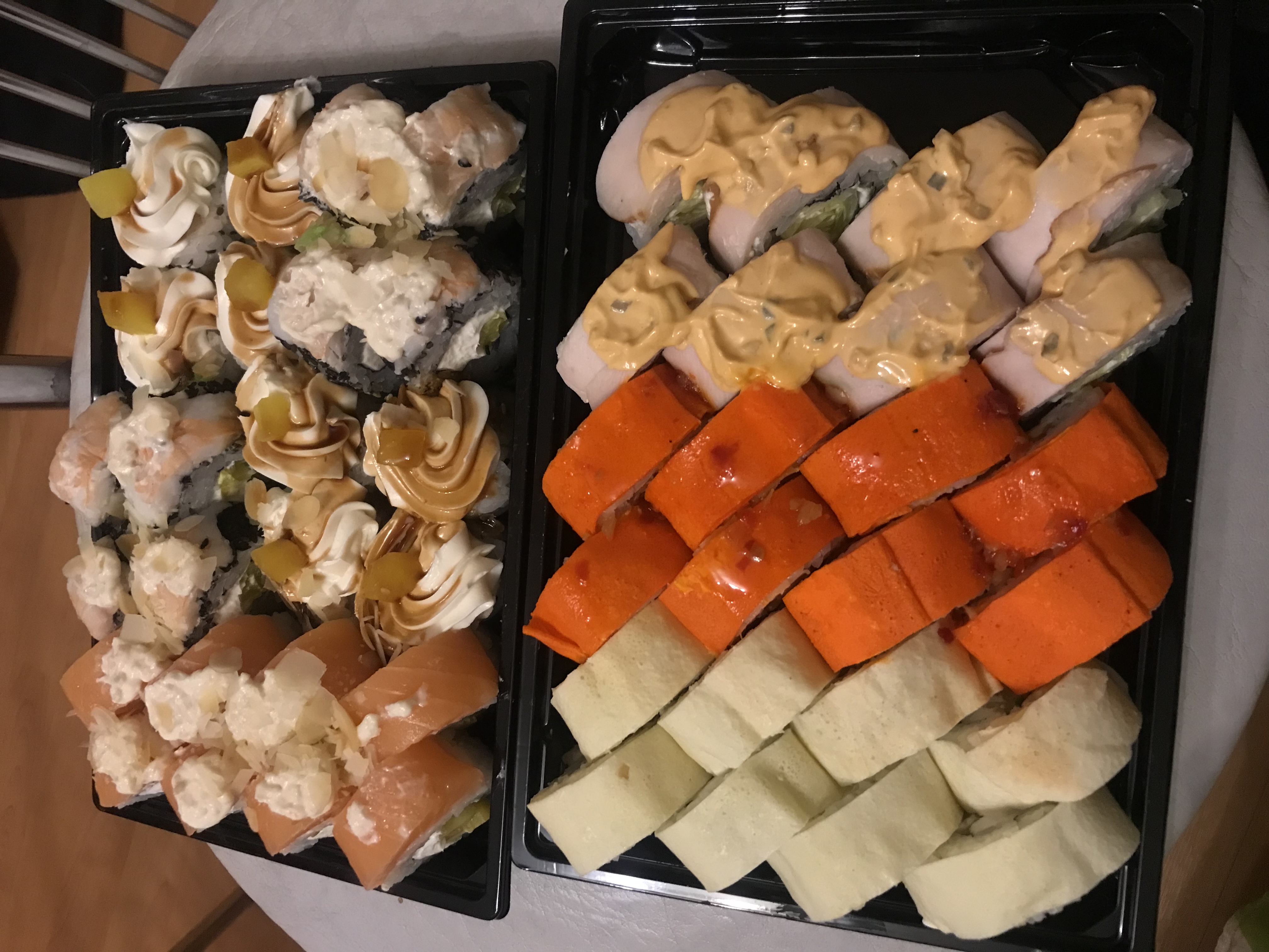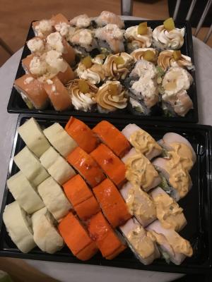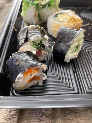 Суши обалденно вкусные 😋🤤 привезли вовремя. Большие, свежие, начинки много, скручены хорошо.