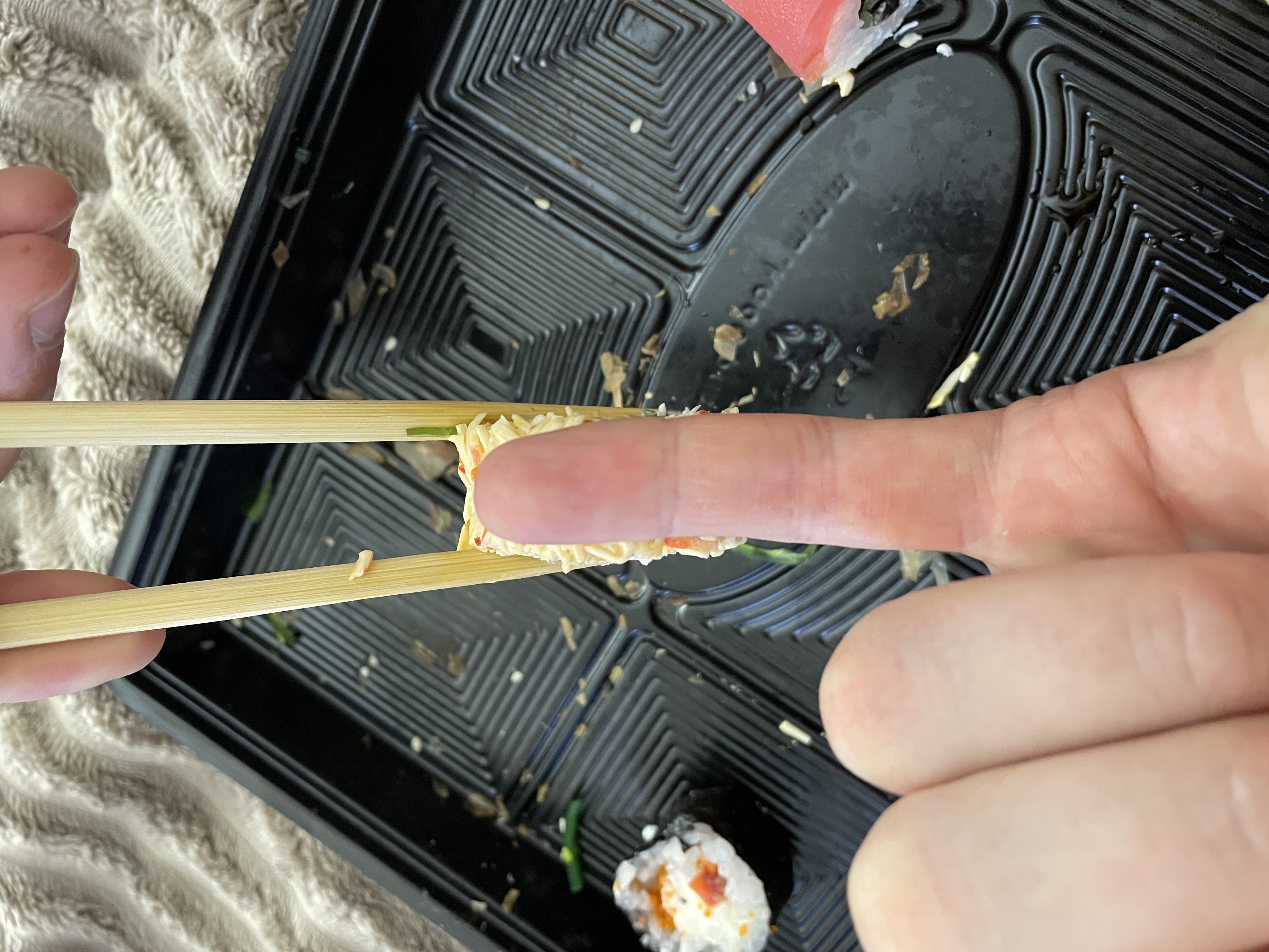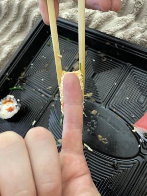 Суши все разваливались,в них куча сухого риса,начинки мало...