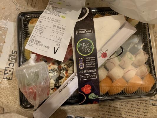 03.05 в 19:42 я написала не слишком позитивный отзыв по качеству сета «Барселона» после этого со мной связался оператор, довольно вежливо уточнил какие конкретно имеются претензии и предложил в качестве извинения + 2 бесплатных ролла к следующему заказу и контроль качества. Вчера, 08.05 мы решили воспользоваться данным предложением заказали сет «Тануки» и два ролла «Филадельфия Бали» и «Эльбрус». Заказ оформили заранее около 20-20:30 через контакт центр, девушка предупредила, что доставку придётся чуть подождать, до 22:20-22:40. Но к этому времени, сожалению, курьер не приехал. Колл центр работает до 22:30 (если верить сайту), но когда я позвонила туда в 22:40 никто мне этого не сообщил, сказали, ожидайте Вам ответить первый освободившийся оператор, которого конечно же не нашлось. Курьер позвонил в 23:36, извинился и сказал что будет через 8 минут, в 23:45 сет всё-таки доехал до нас. По вкусу претензий нет, все суши оказались очень хорошо, впечатление испортили только шапочки, которые остались на крышке от коробки и час задержки заказа. В целом сет и роллы нам понравились, хотелось бы корректной работы кц и курьеров, а так же подходящих по размеру упаковок, для того чтобы шапочки всё-таки оставались на своём месте.