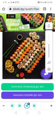 - Промокод дает право на скидку до 60% на суши-сеты от "ART FOOD"