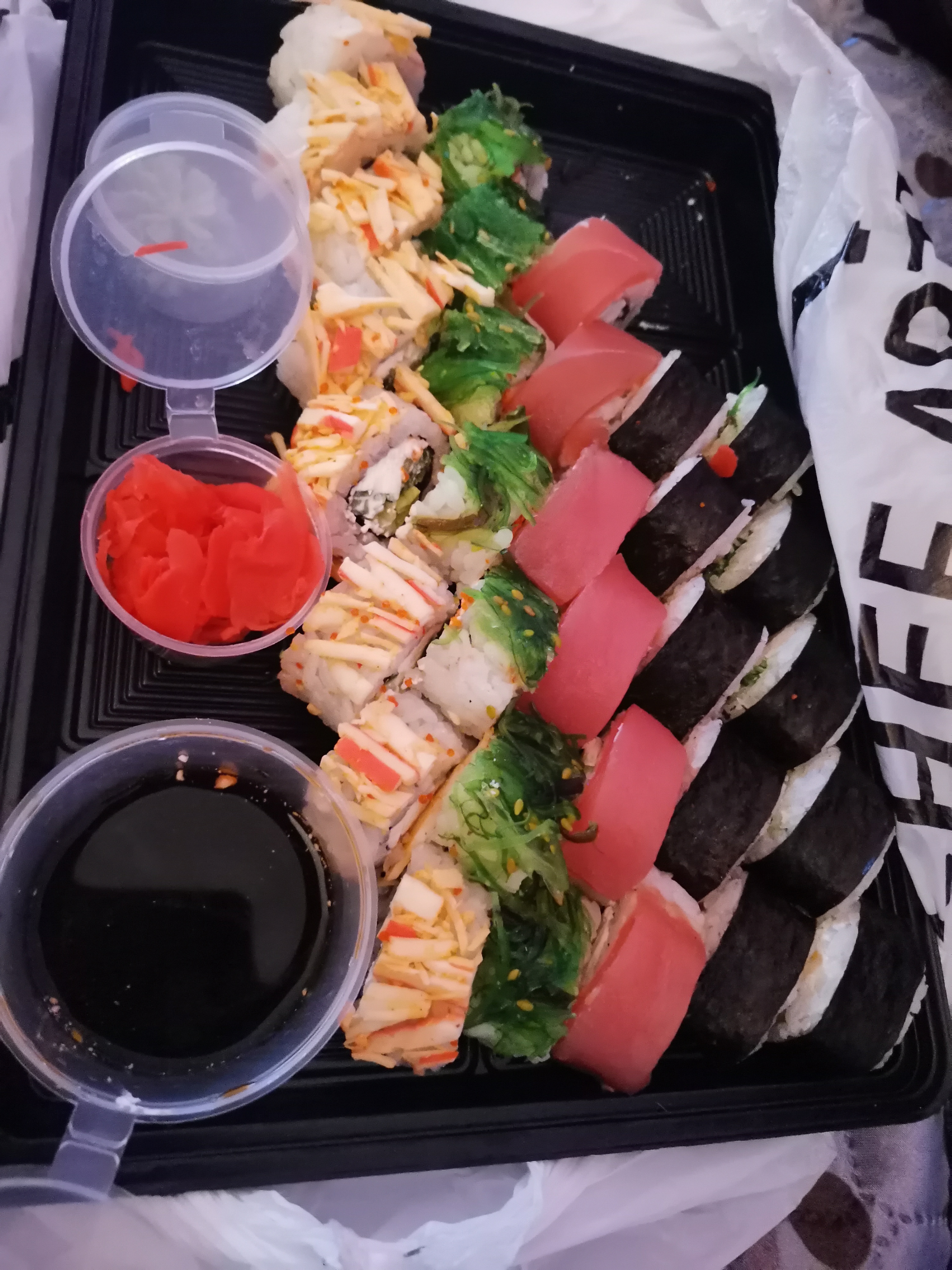 Вкусные суши, очень свежие, приехали вовремя. Все ок 🥰