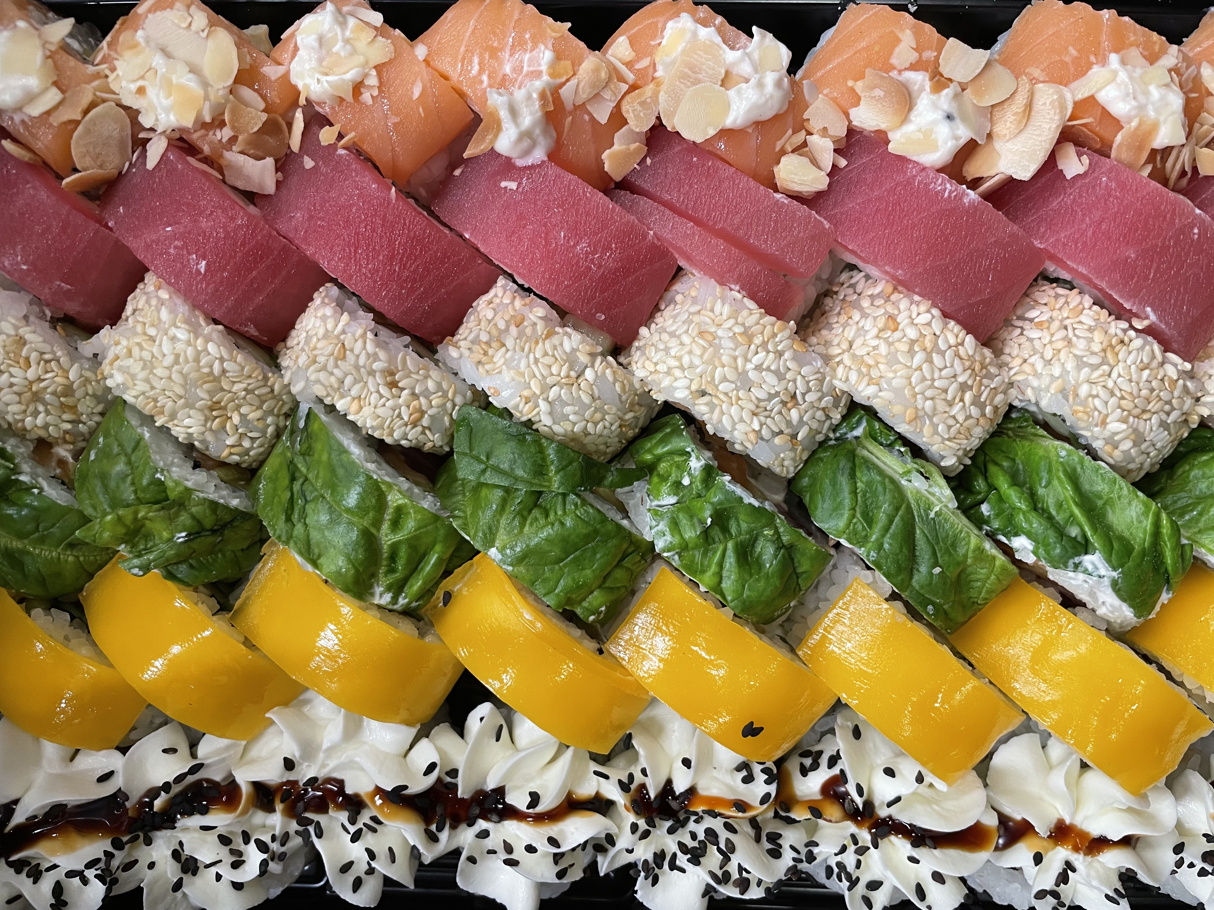 Поставили бы 5 звёзд, но кусок целлофана в последнем ролле из сета испортил всё впечатление. Помимо этого всё очень вкусное.