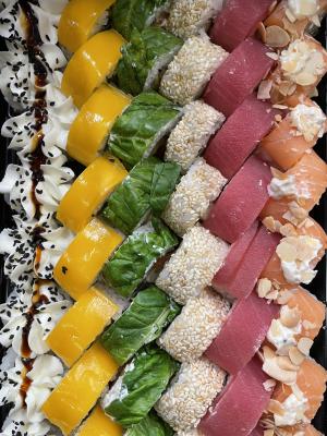- Внимание! К предзаказу на 31.12 доступны: сет "Новогодний", "Мамины радости", "Макеба", "Ясахи", "Филадельфия", "Каприз", "Игра в кальмара", "Можно всё!", "Мама босс", "Палитра вкуса", "Муж купил", "Биг босс", "Мафия", "Манга", роллы Урамаки, все напитки и гарниры