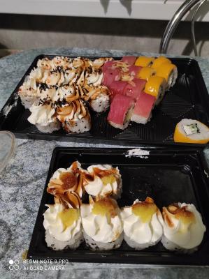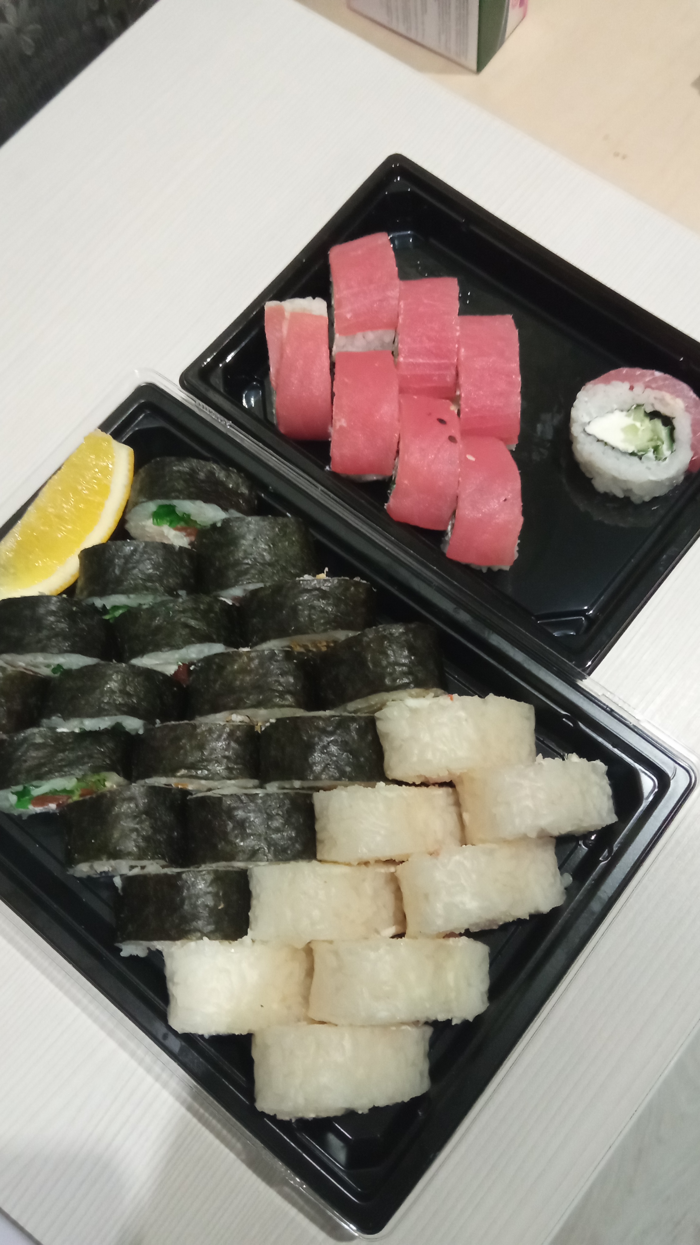 Суши привезли, к сожалению я уже спала, но спасибо что доставили. Все очень вкусно, но омрачает то, что не дали обратной связи, хоть бы предупредили.