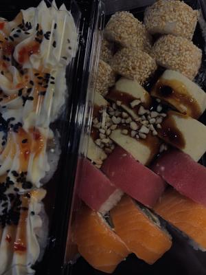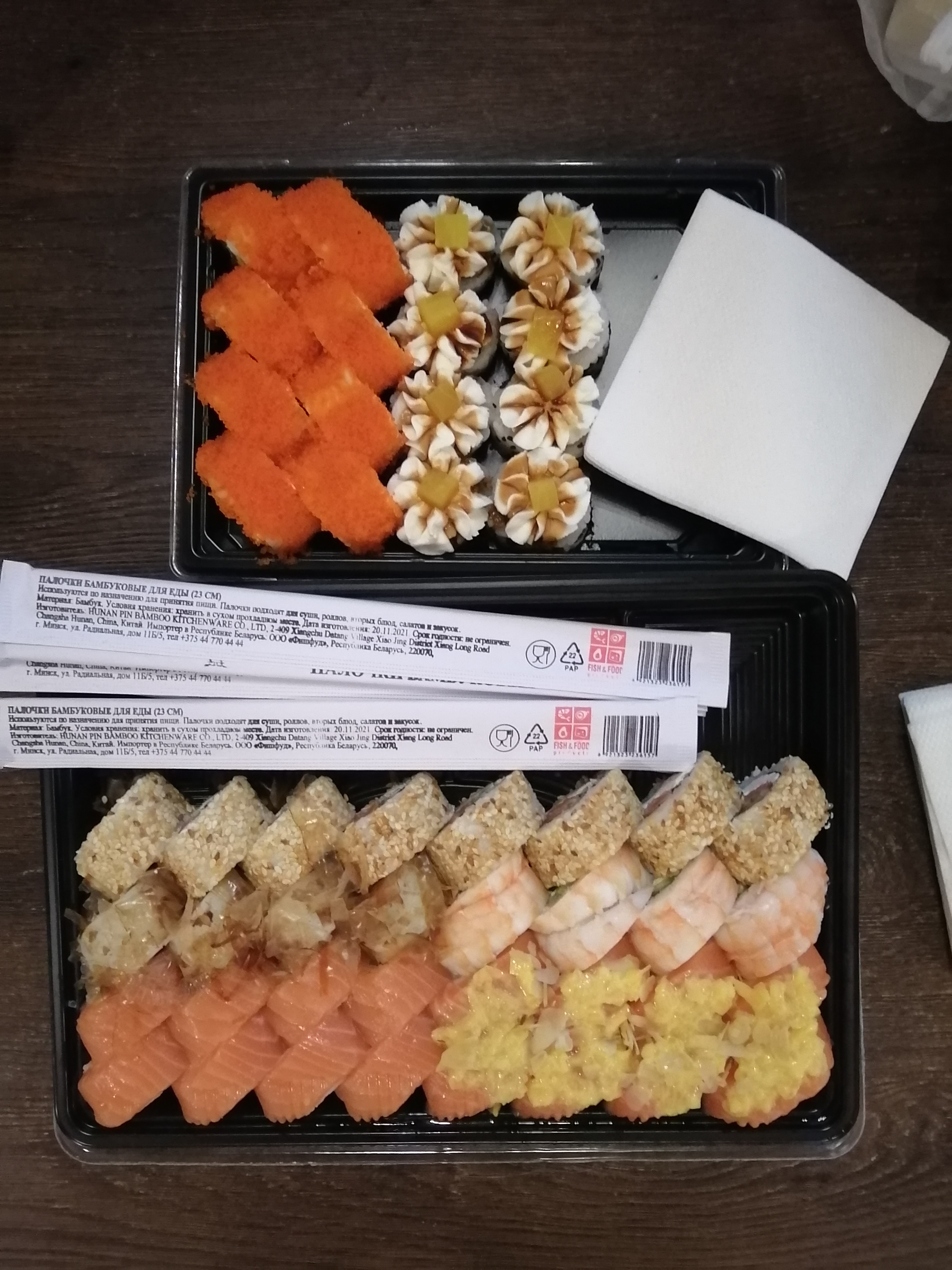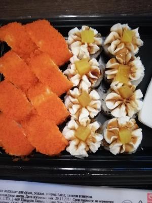 - Внимание! К предзаказу на 31.12 доступны: сет "Новогодний", "Мамины радости", "Макеба", "Ясахи", "Филадельфия", "Каприз", "Игра в кальмара", "Можно всё!", "Мама босс", "Палитра вкуса", "Муж купил", "Биг босс", "Мафия", "Манга", роллы Урамаки, все напитки и гарниры
