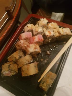 Заказ везли больше чем указывали при заказе. Привезли не свежие суши. Рыба была не свежая, так же в роллах с курицей исходил ужасный запах не первой свежести. Большая часть заказа пошла в мусорку, остались максимально не довольны.