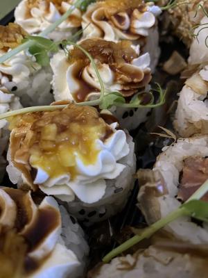Забирала самовывозом, приготовили быстро. Персонал приятный, вежливый. Ну а сами суши огонь 😊 вкусные и большие, не разваливаются, всего много. Спасибо за хорошее настроение 💕