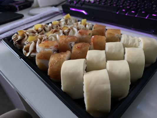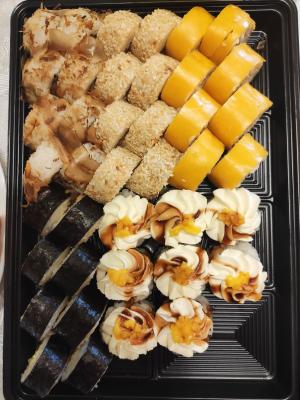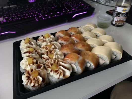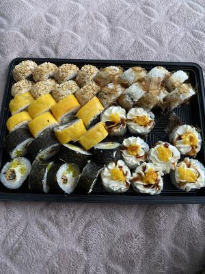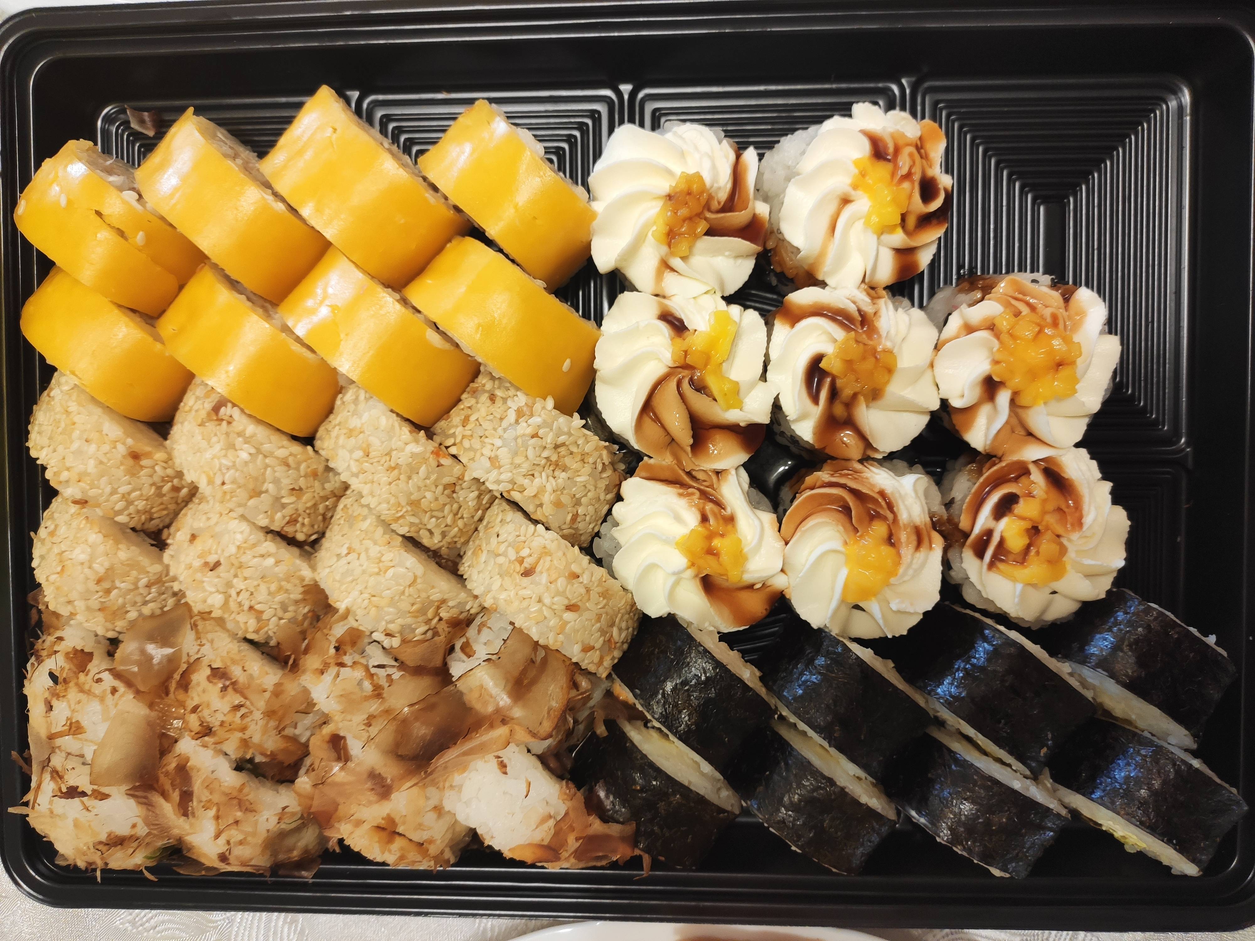 - Внимание! К предзаказу на 31.12 доступны: сет "Новогодний", "Мамины радости", "Макеба", "Ясахи", "Филадельфия", "Каприз", "Игра в кальмара", "Можно всё!", "Мама босс", "Палитра вкуса", "Муж купил", "Биг босс", "Мафия", "Манга", роллы Урамаки, все напитки и гарниры