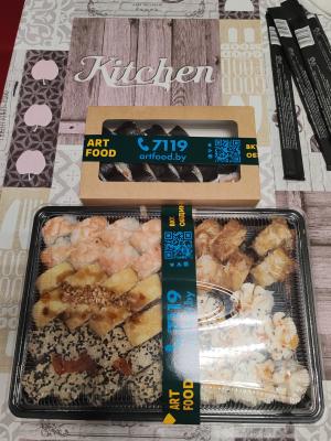 - Промокод дает право на скидку до 60% на суши-сеты от "ART FOOD"