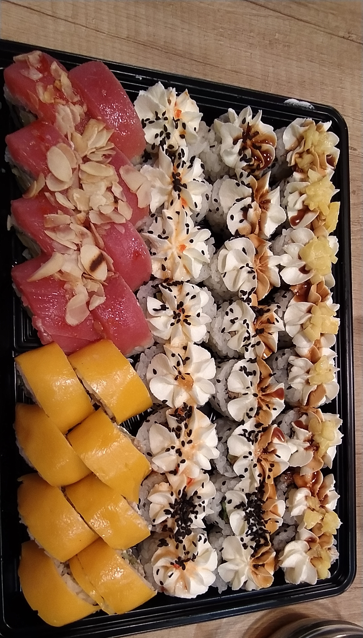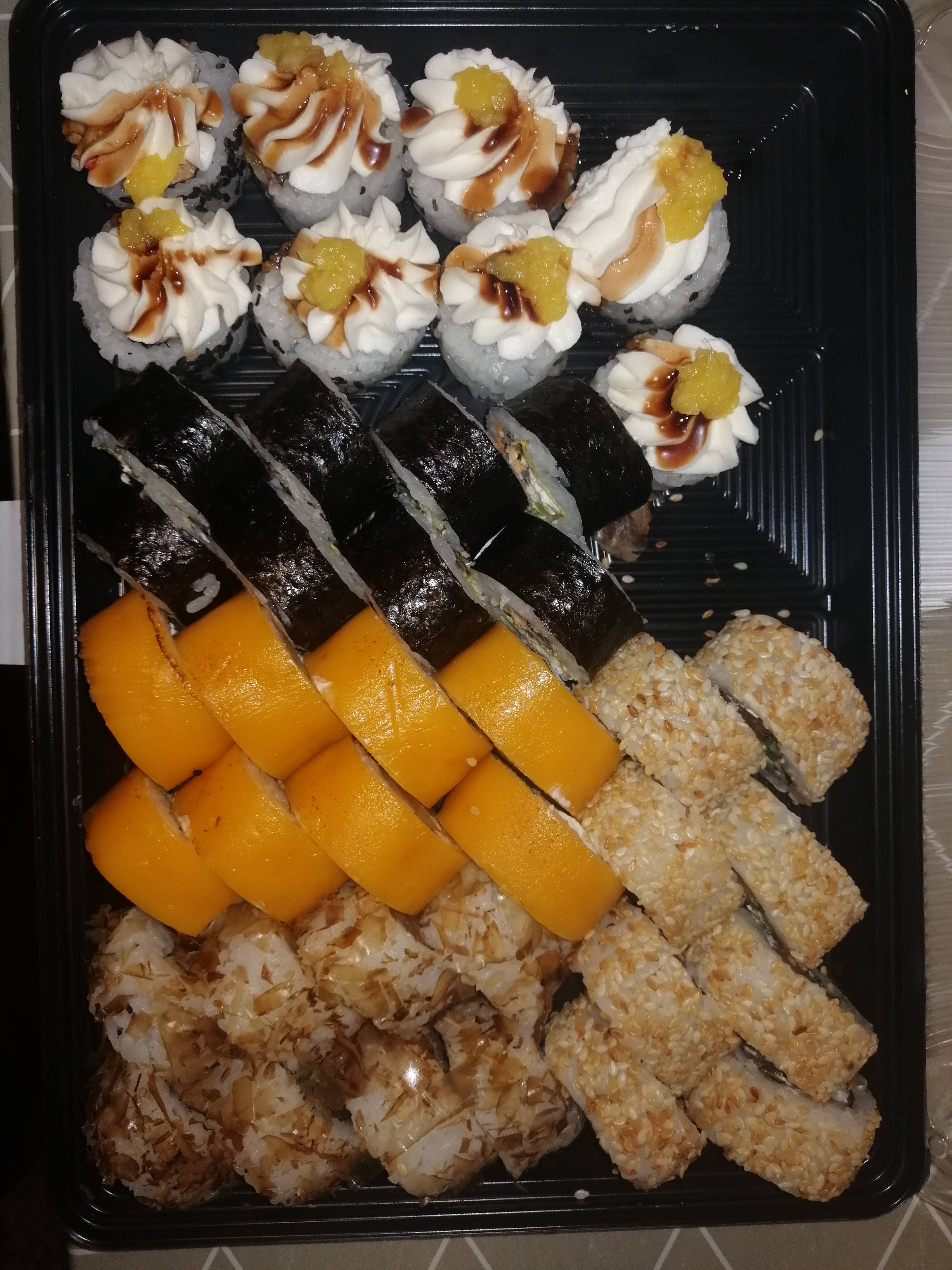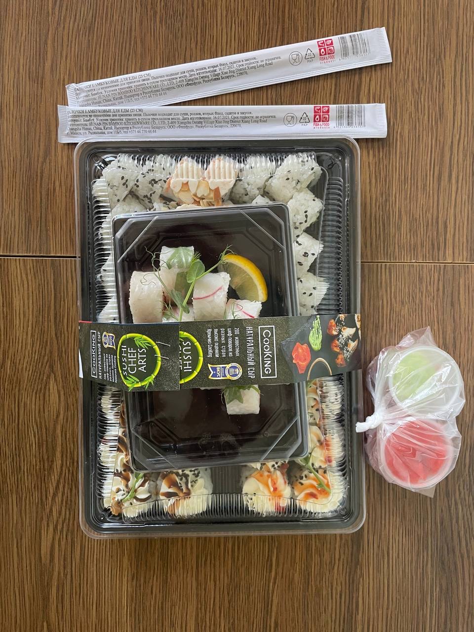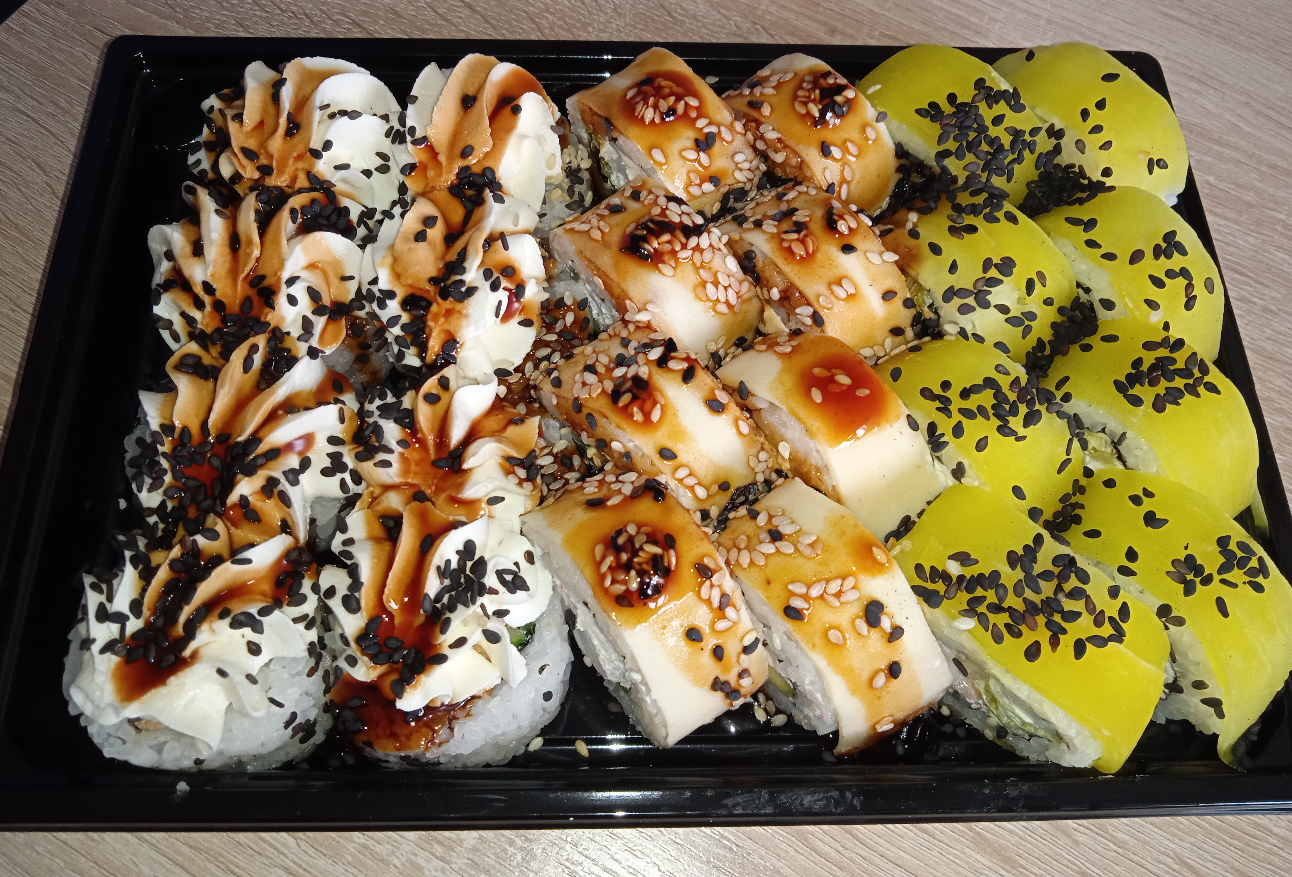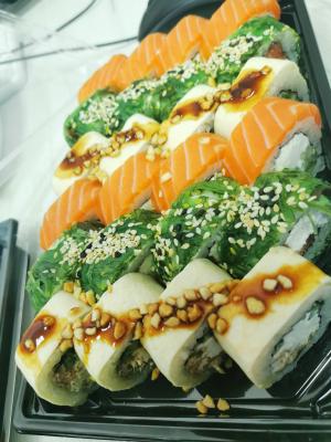 Заказывали обед на работу. Коллеги довольны, рыбы много, все скручено аккуратно и курьер все привёз вовремя. Спасибо за акцию!