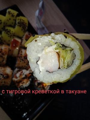Заказывали роллы штучно не сэтом самовывозом с Притыцкого. Очень любим с креветками, в заказе было два вида - с тигровой креветкой в такуане и Колумбия. Так вот в такуане были креветки, а в Колумбии их просто пожалели наверное.