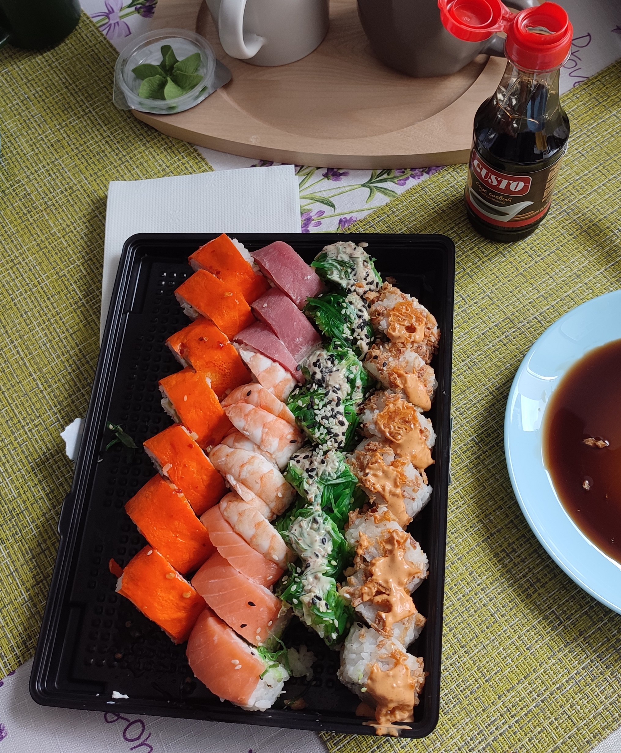 - На 1 суши-сет прилагается не более 4 комплектов палочек