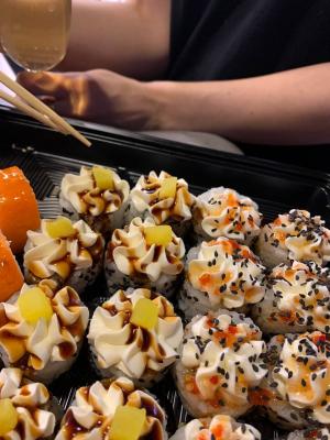 - Внимание! К предзаказу на 31.12 доступны: сет "Новогодний", "Мамины радости", "Макеба", "Ясахи", "Филадельфия", "Каприз", "Игра в кальмара", "Можно всё!", "Мама босс", "Палитра вкуса", "Муж купил", "Биг босс", "Мафия", "Манга", роллы Урамаки, все напитки и гарниры