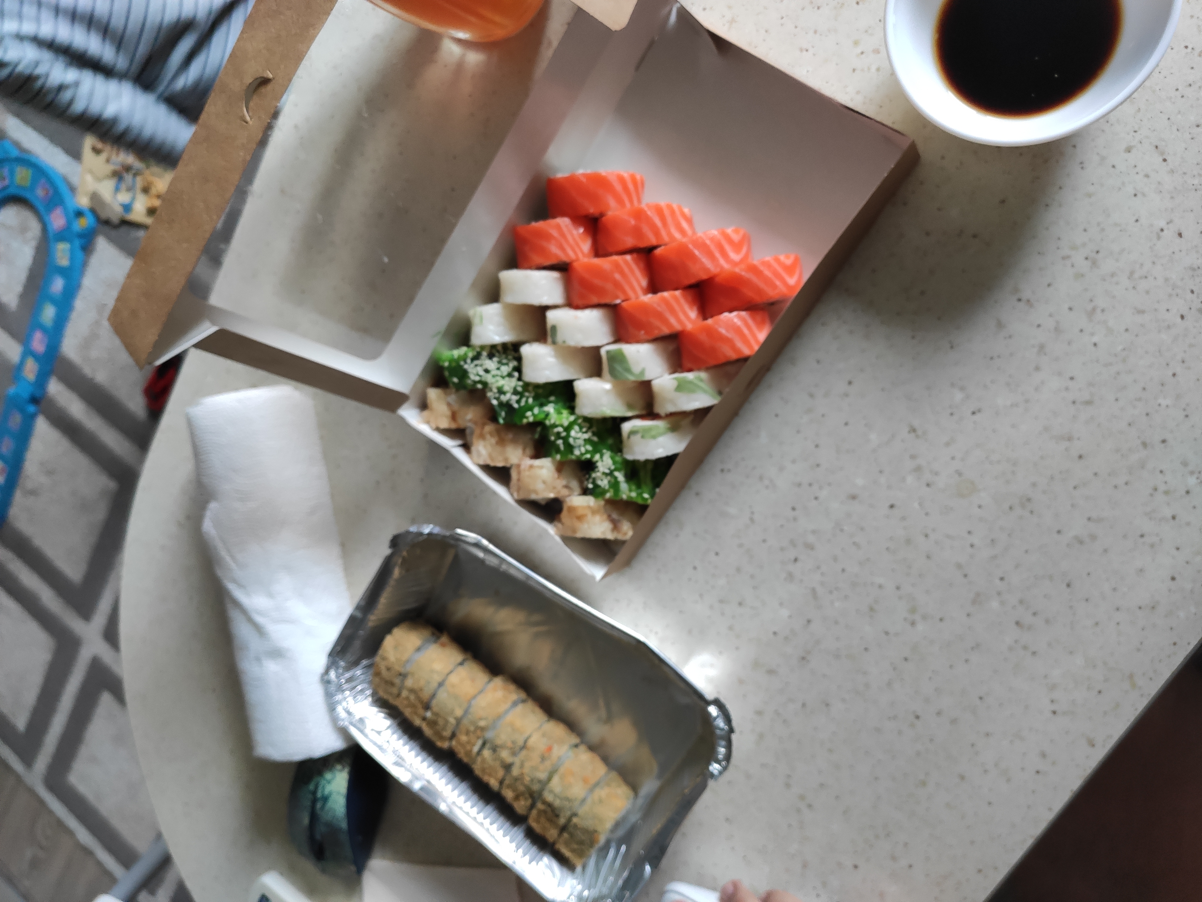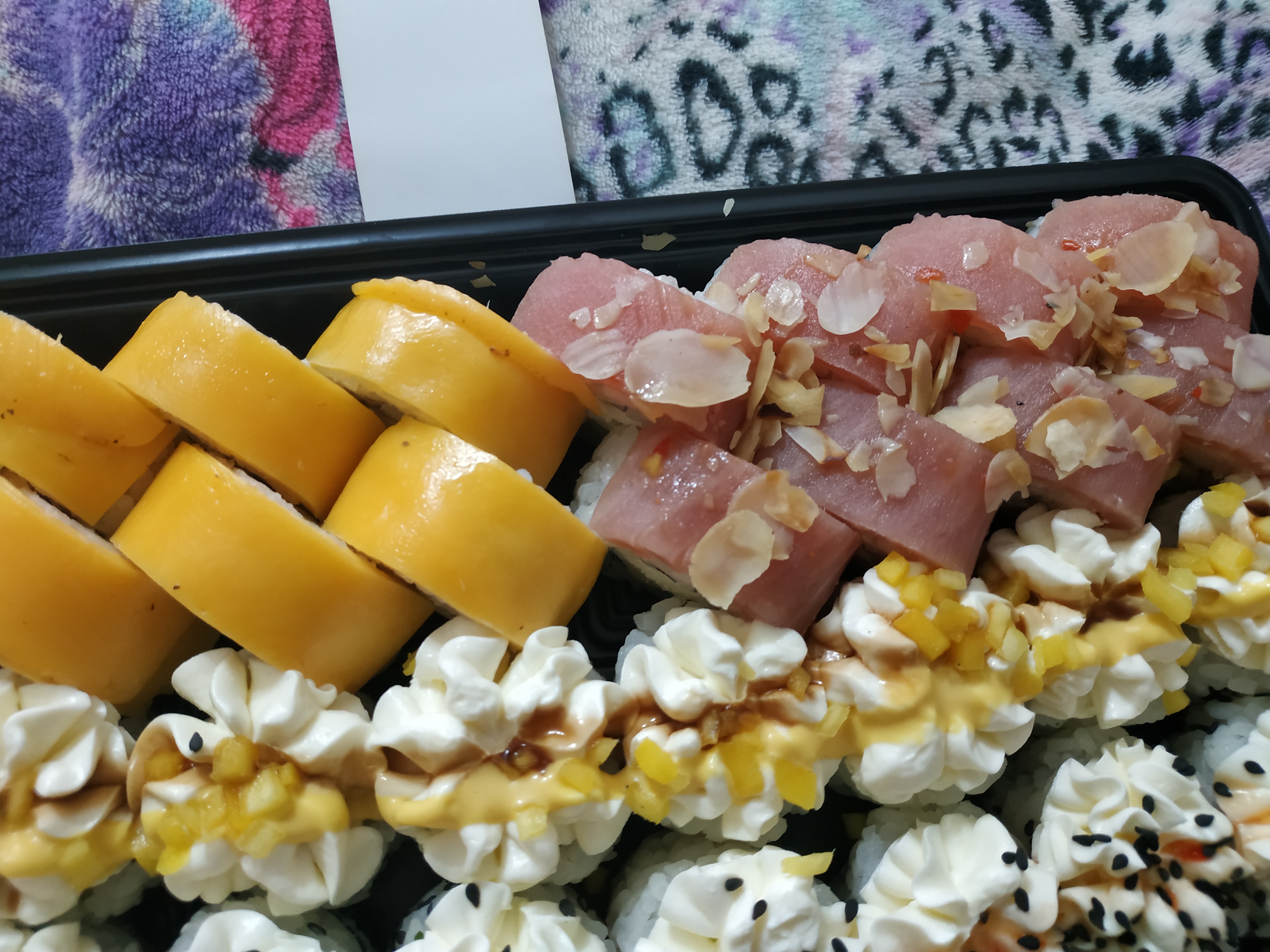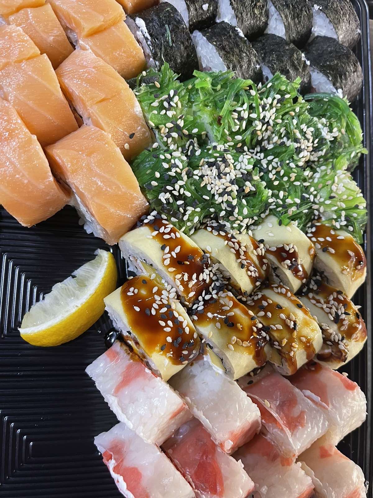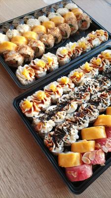 Заказывали суши-сеты Монро и Нацу на праздник. Курьер приехал вовремя, суши были очень красивыми и вкусными, все осталтсь довольны