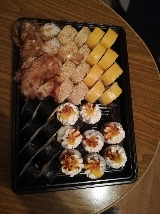 Сет Манэки бесподобен, особенно вкусные вышли у повара гунканы. Заказ забирали с Алми.
