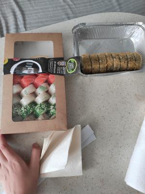Заказали сет Хороший день1. Суши не первой свежести. Не понравилось. Больше заказывать не буду. Ореховый соус в очень маленькой упаковке... Обычно заказывала в другом заведении, там намного вкуснее. А тут повелась на скидку, кто интересно заказывает за полную стоимость🤷‍♀️🤷‍♀️🤷‍♀️