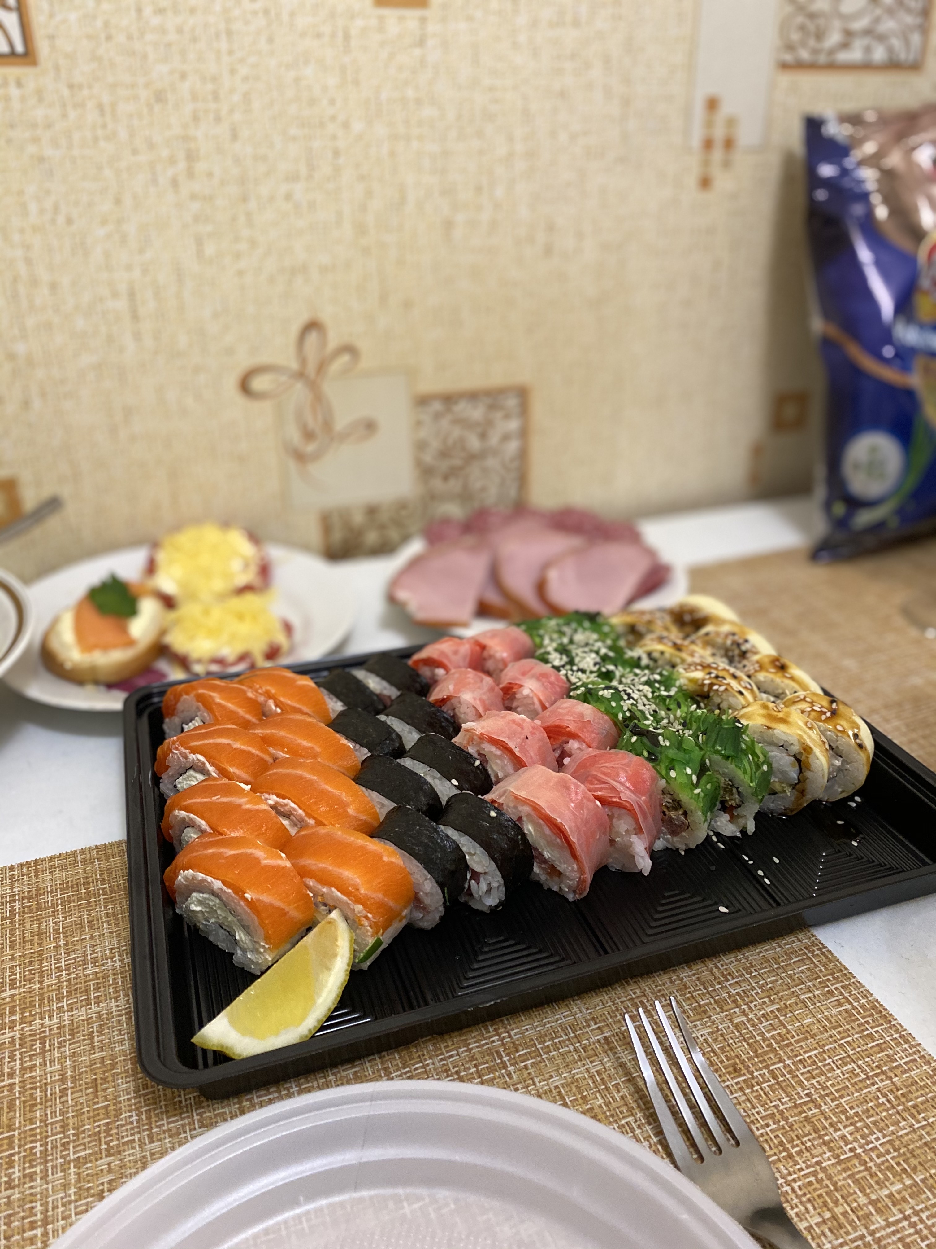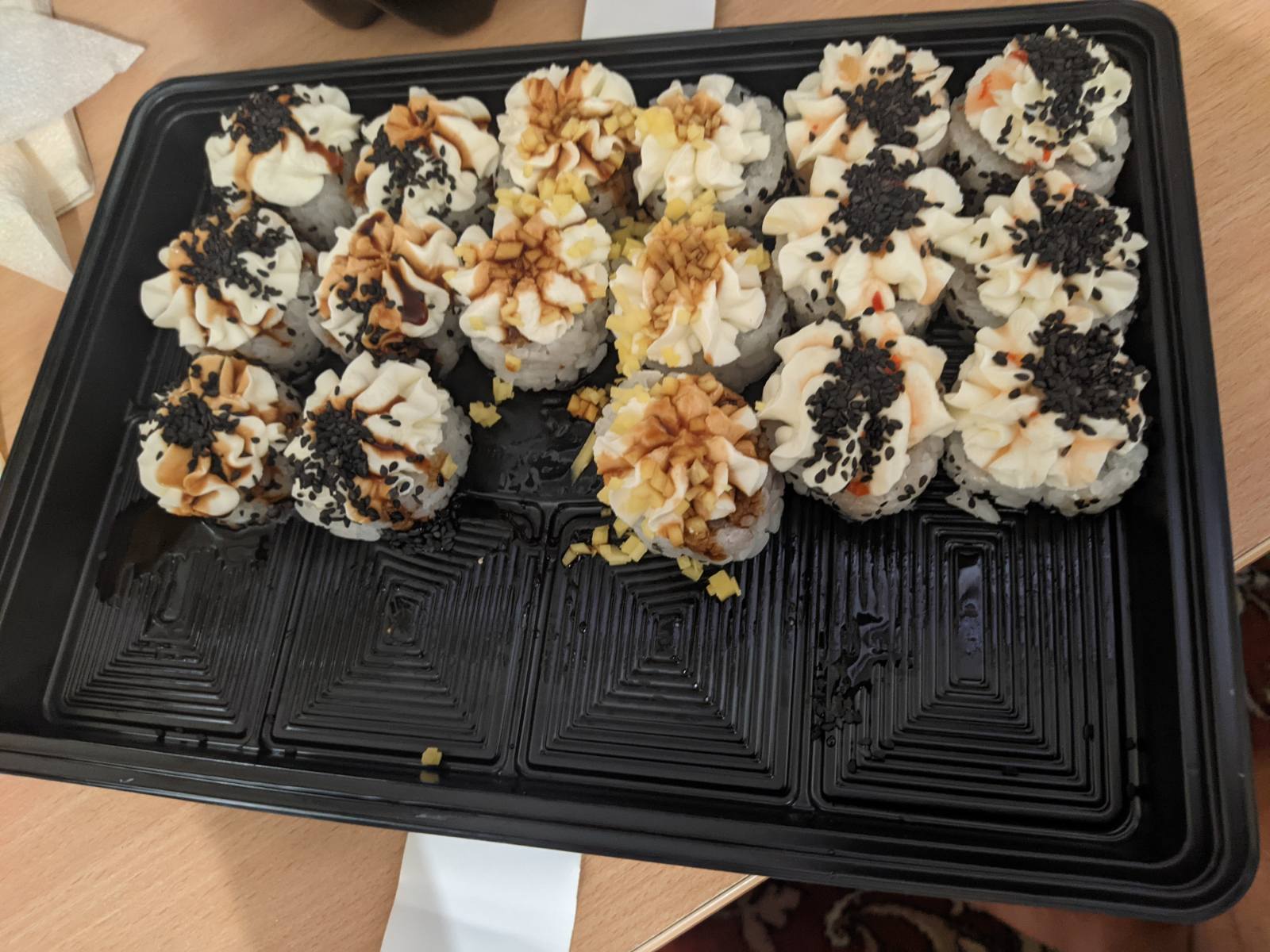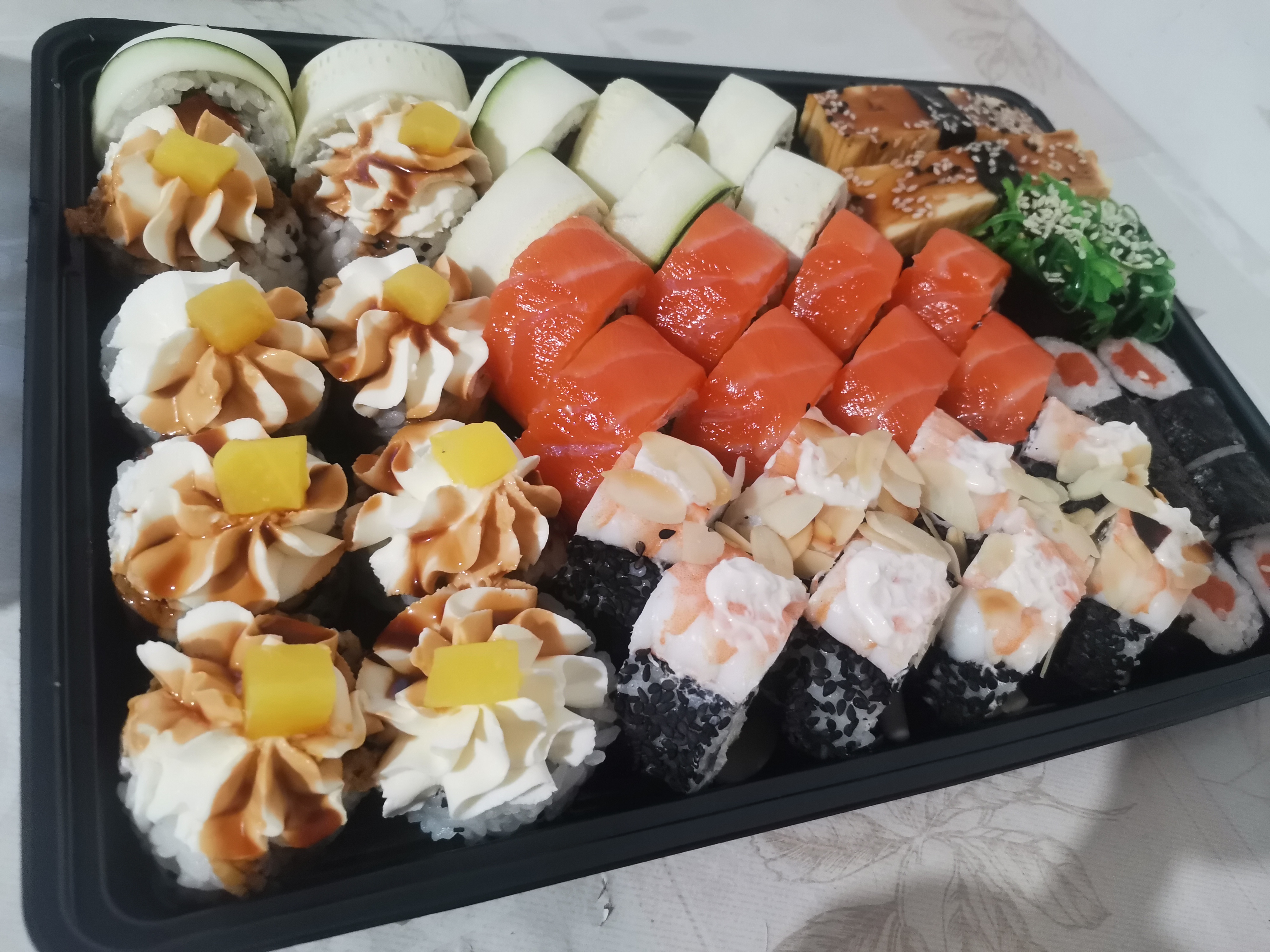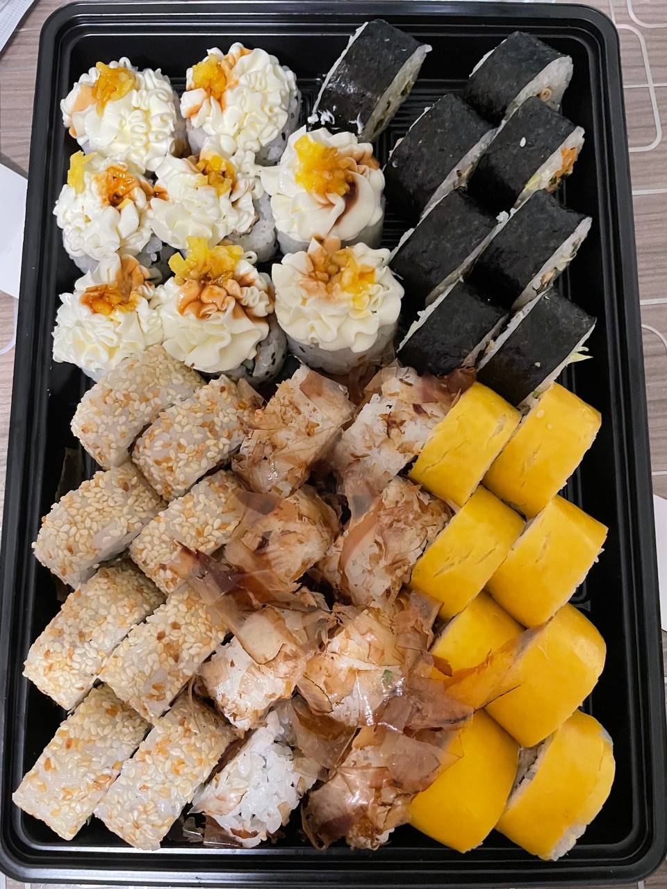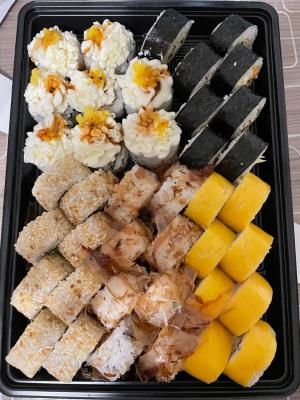 - Внимание! К предзаказу на 31.12 доступны: сет "Новогодний", "Мамины радости", "Макеба", "Ясахи", "Филадельфия", "Каприз", "Игра в кальмара", "Можно всё!", "Мама босс", "Палитра вкуса", "Муж купил", "Биг босс", "Мафия", "Манга", роллы Урамаки, все напитки и гарниры