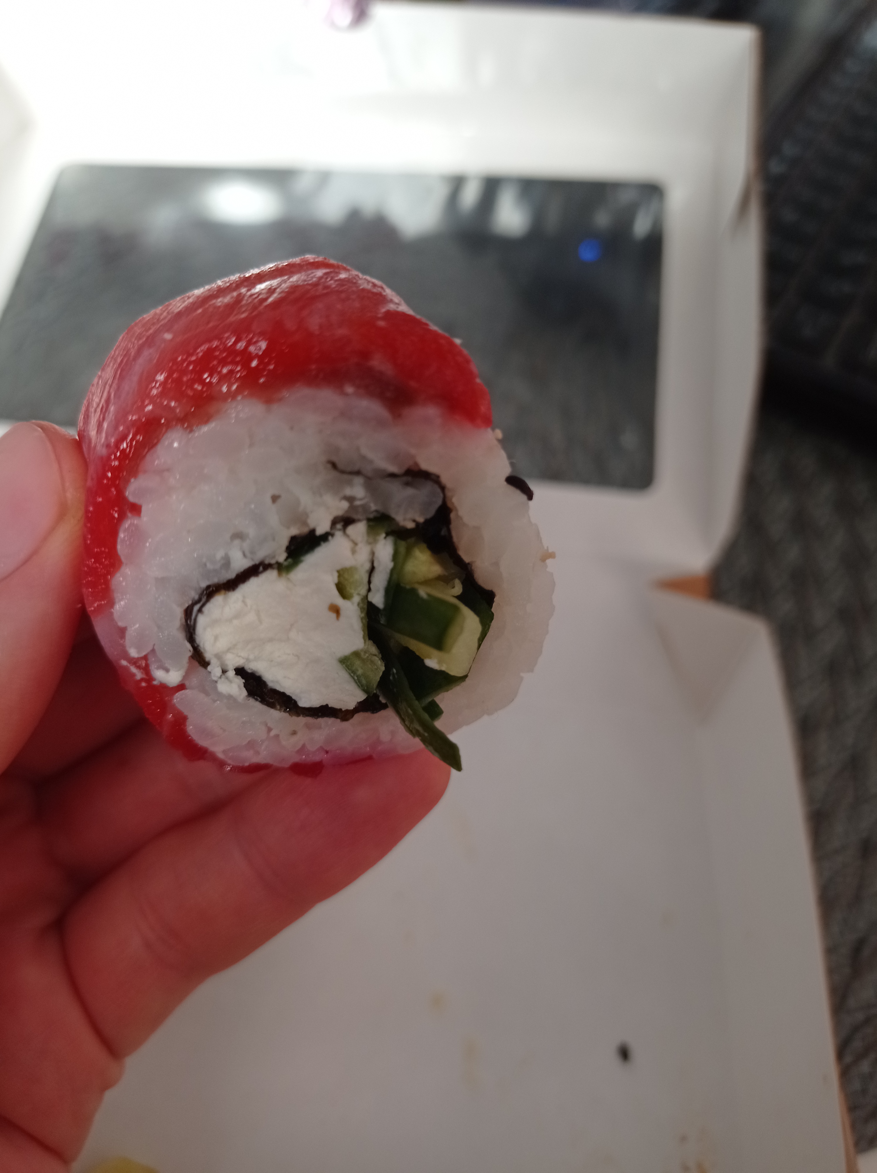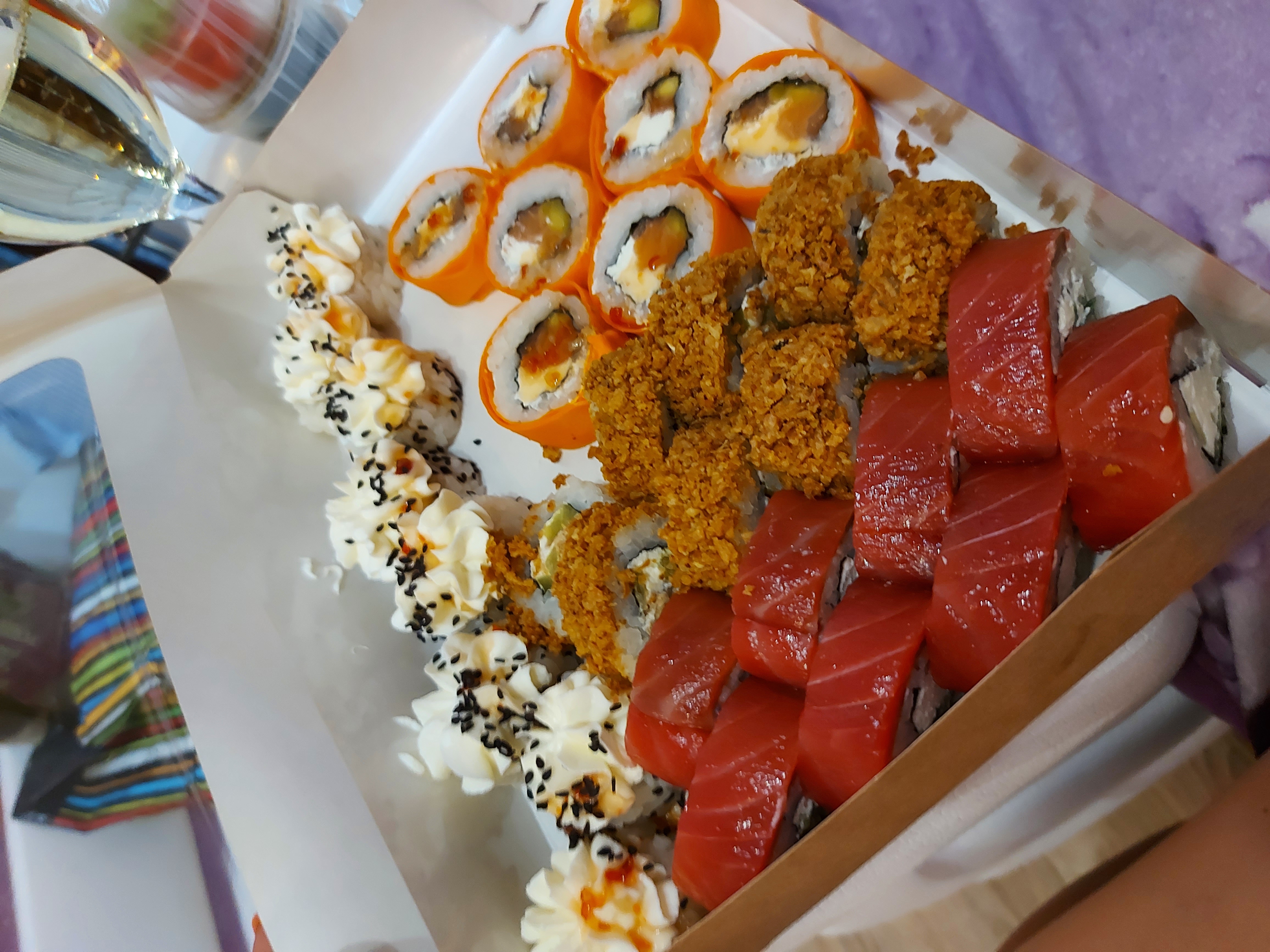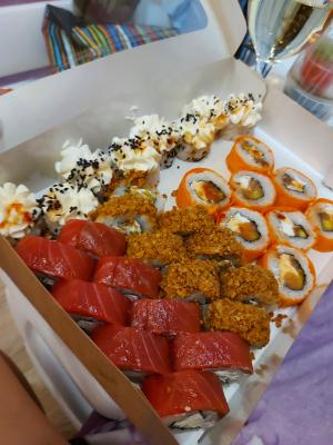Всё супер вкусно. Я в восторге лежу перевариваю ваши обалденные суши и пишу вам отзыв ❤️. Рекомендую себе к заказу ещё раз и другим вашим клиентам 👍🏻👍🏻👍🏻